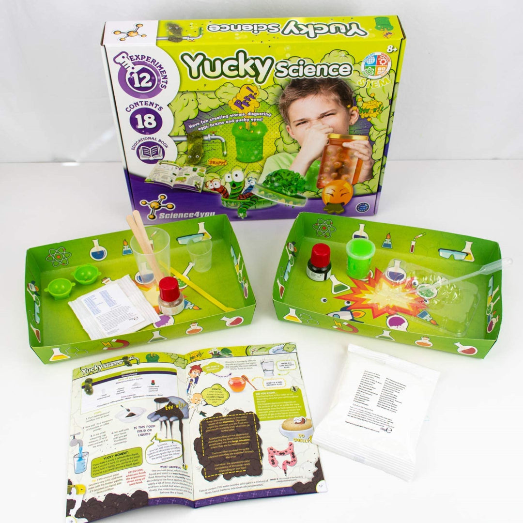 Yucky Science allows you to create the most nasty yet fantastic experiments possible! Make a bizarre faeces that may be either solid or liquid in consistency. Make a fantastic sewer monster out of a garbage can. Make up fake snot and fake vomit to fool people. Farts may be simulated while learning about how farts arise in living things. Yucky Science is intended to pique the interest of young scientists while also helping them to improve skills such as creativity, focus, and memory.