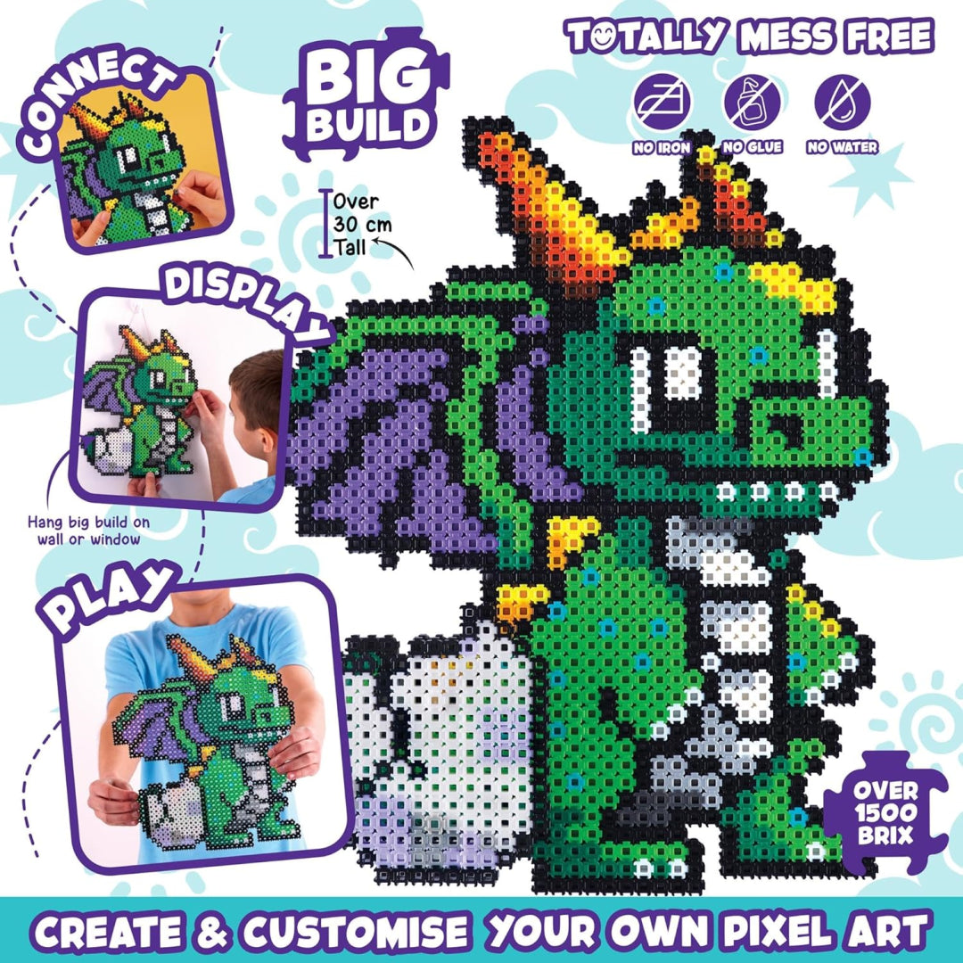 Create jaw-dropping pixel art that'll make your little ones roar with excitement! The Simbrix Dragon Wall Art Craft Kit comes with over 1,500 colourful brix to build an amazing dragon display that's over 30cm tall. Perfect for rainy day activities or quiet crafting time, these mess-free brix click together without any need for glue or water - brilliant for keeping your home tidy whilst the kids get creative!
