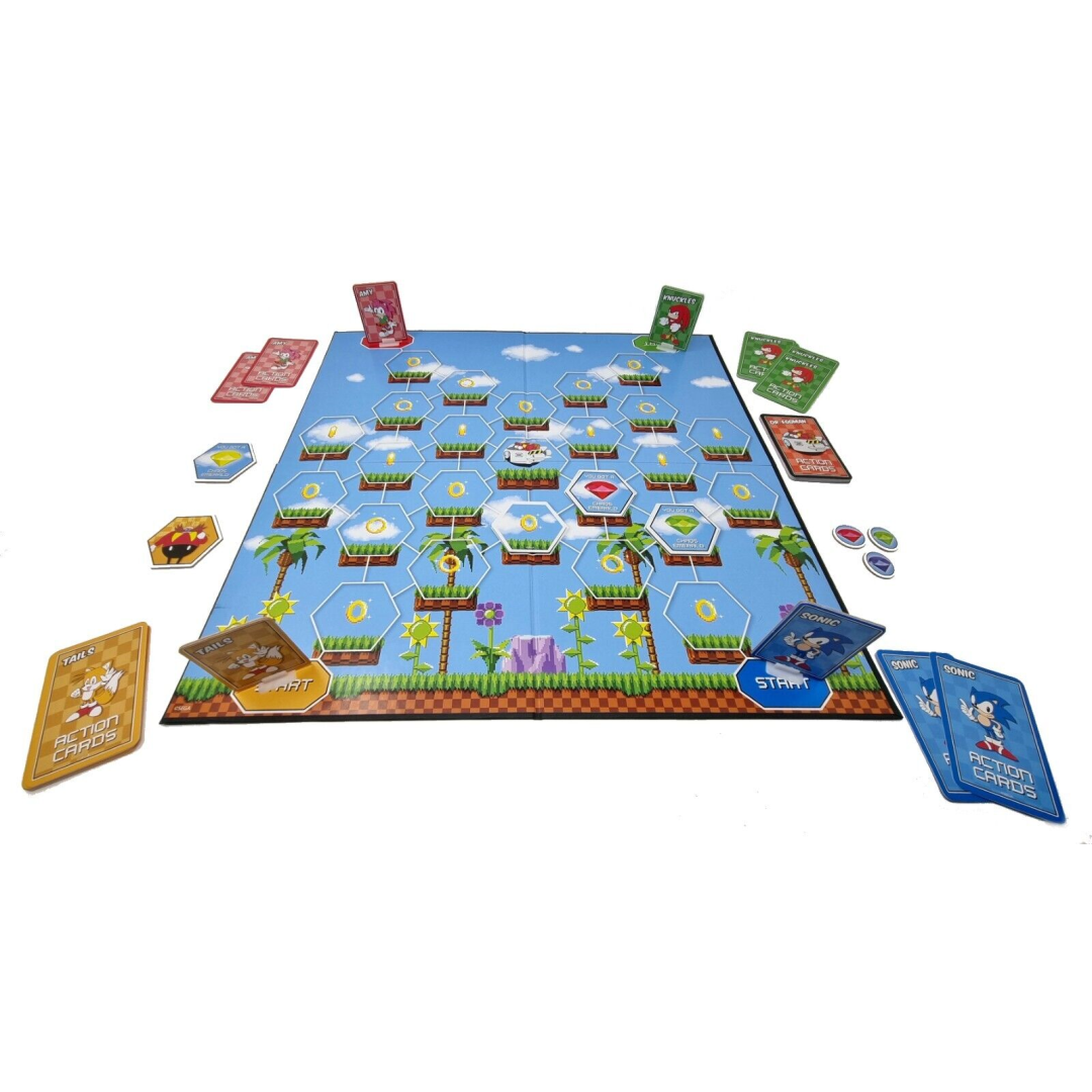 Join Sonic the Hedgehog and his friends in this thrilling board game that's perfect for family game nights! Your little ones will love racing as their favourite characters - Sonic, Amy, Tails or Knuckles - to collect all seven Chaos Emeralds before Dr. Eggman's robots catch them.