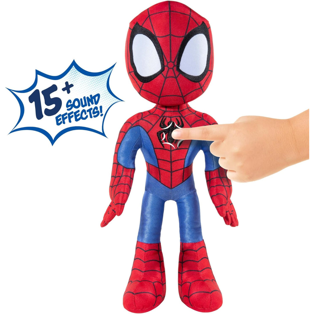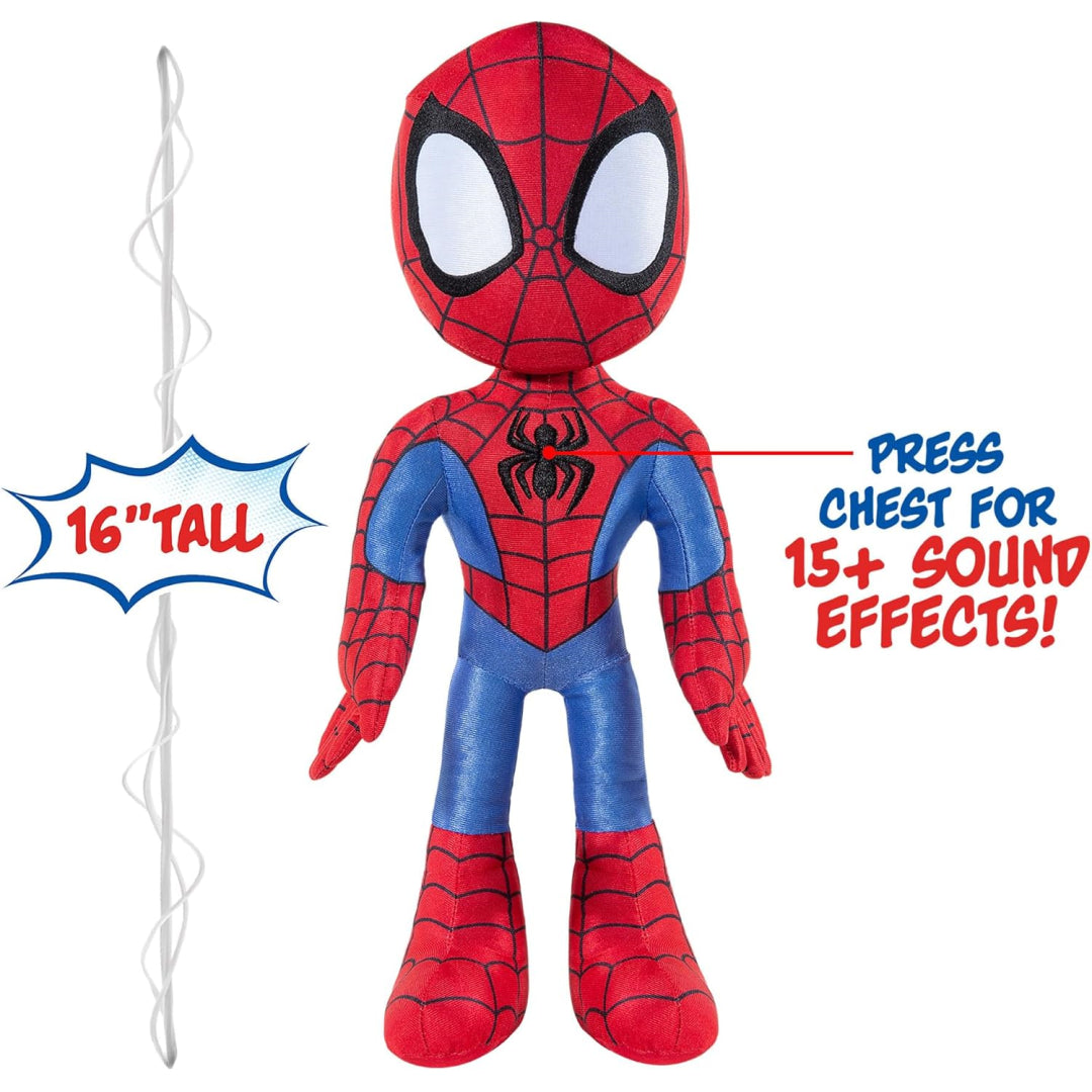 Ready to add a super-special friend to your little one's toy box? This adorable 16" Marvel Spidey plush is the perfect buddy for your mini hero! Perfect for cuddles and playtime adventures, this soft Spidey speaks when you press his chest, making imaginative play even more exciting.