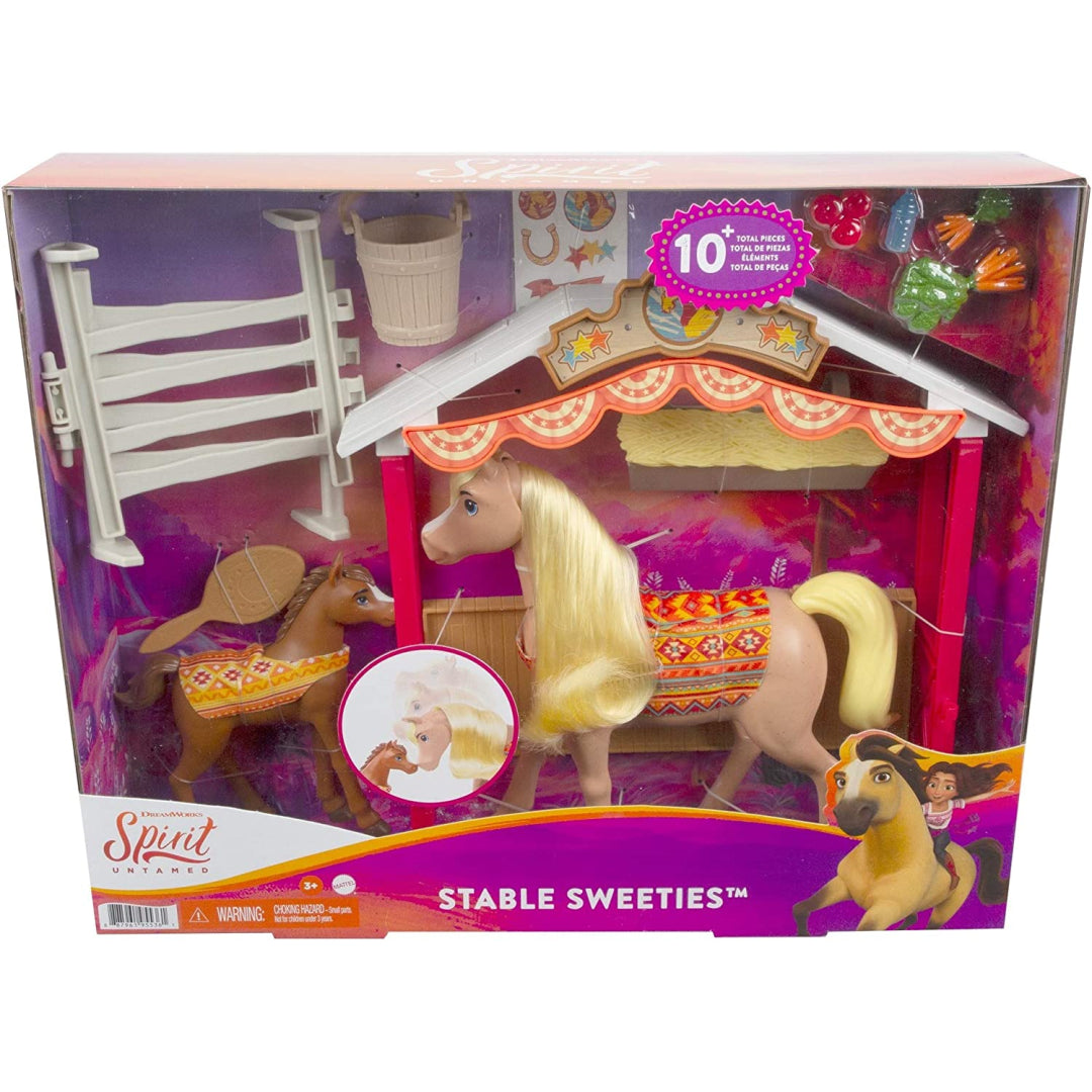 Spirit Untamed, an animated film produced by DreamWorks, invites you to take part in the film's themes of camaraderie, courage, and adventure. With the Stable Sweeties playground, children may gain knowledge about how to properly care for horses and feed them.