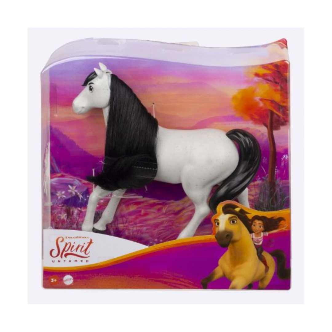 Bring the magic of Spirit home with this gorgeous white horse figure! Standing at an impressive 8 inches tall, this movie-accurate horse is perfect for creative play and collecting. The moveable head lets your little ones create endless poses, while the long, flowing mane is ideal for grooming and styling - just like in the film!