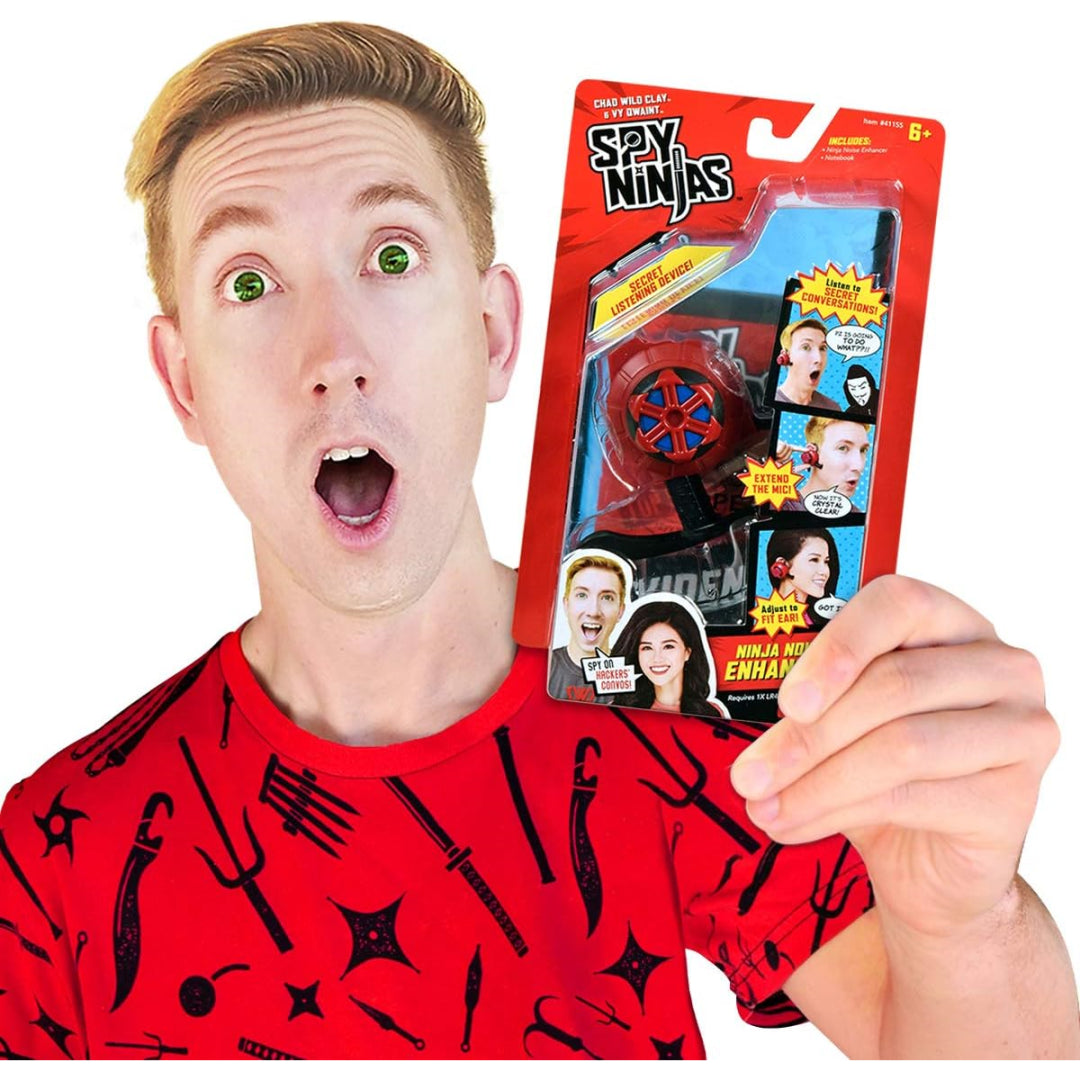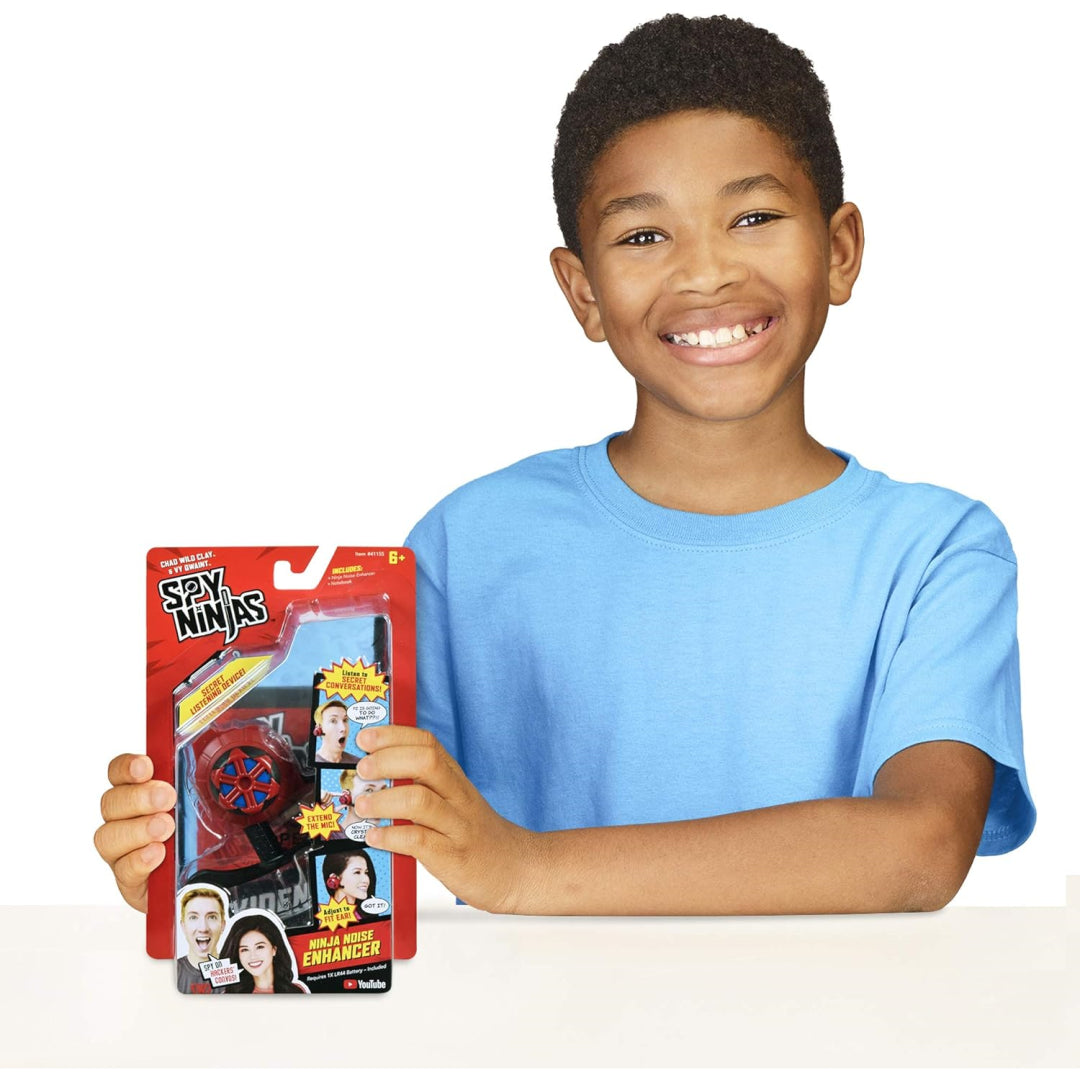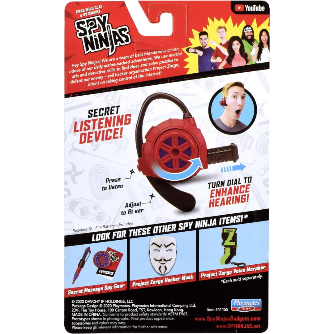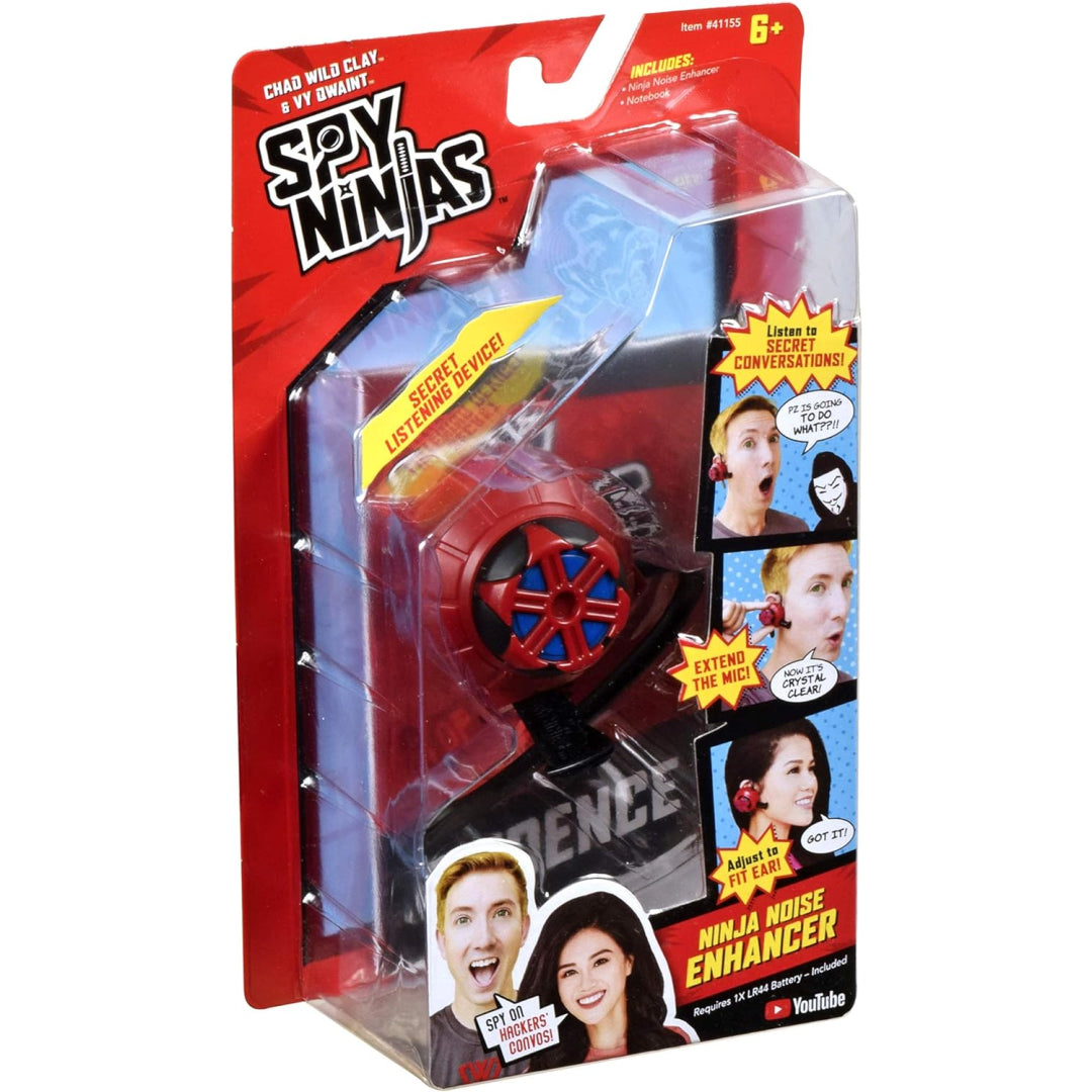 The goal of the malicious hacker group Project Zorgo, which is trying to take over the internet, is defeated by the spy ninjas via the use of martial arts and detective techniques to uncover clues and solve riddles. To hear Hacker's private discussions, press and hold the Ninja Noise Enhancer's back button. The Ninja Noise Enhancer fits perfectly on your ear for those secret operations, with an adjustable ear piece and a twisting dial for expanding the microphone. Use your Ninja Stealth abilities and clip on the Ninja Noise Enhancer.