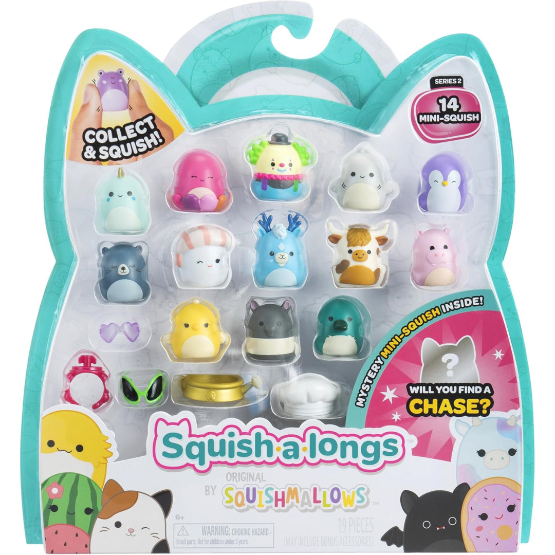 Dive into a world of adorable mini collectibles with this fabulous 14-pack of Squishmallows Squish-A-Longs Series 2! Perfect for busy mums who love treating their little ones to something special without breaking the bank. Each pack contains 14 mystery 1-inch Squishmallows, complete with fun accessories like heart sunglasses and hats.