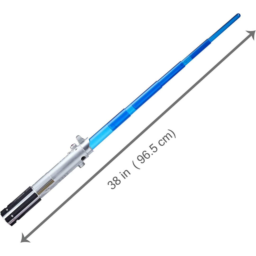 Activate light and sound effects with the press of a button to bring your Jedi training to life. Hear the power-up and power-down sound effects as you wield the lightsaber with skill and precision. With a simple press of a button, the lightsaber's blade extends from 17 inches to an impressive 24 inches, giving you the versatility to adapt to any combat scenario. Authentic Design: Designed after Rey's lightsaber from her Jedi training, this electronic lightsaber captures the essence of the Star Wars universe with its authentic details and craftsmanship.