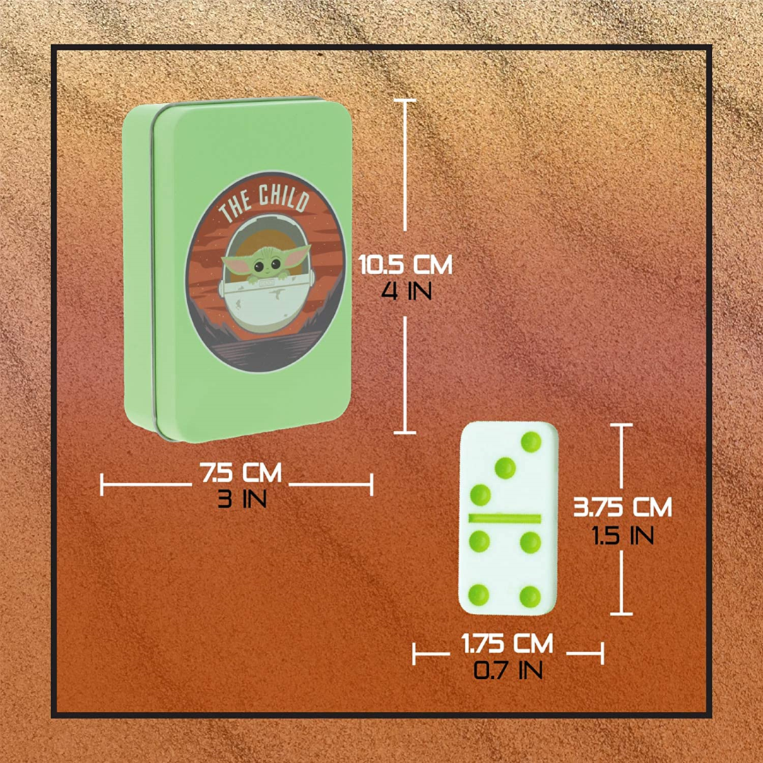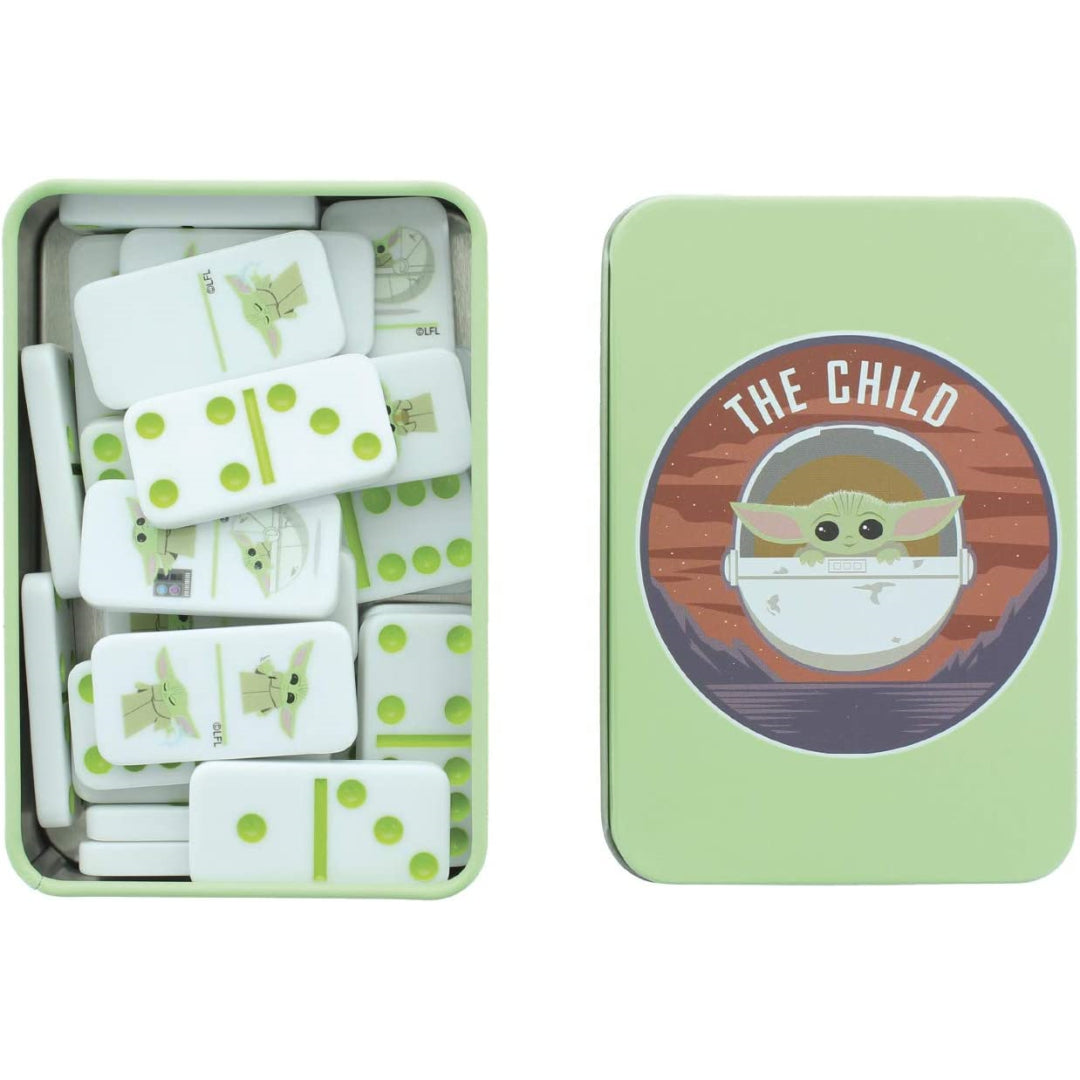 Tile game: This set of 28 plastic dominoes has charming cartoon pictures of The Child, sometimes known as "Baby Yoda," on one side of each piece, while the other features conventional places and provides two different ways to play the game.