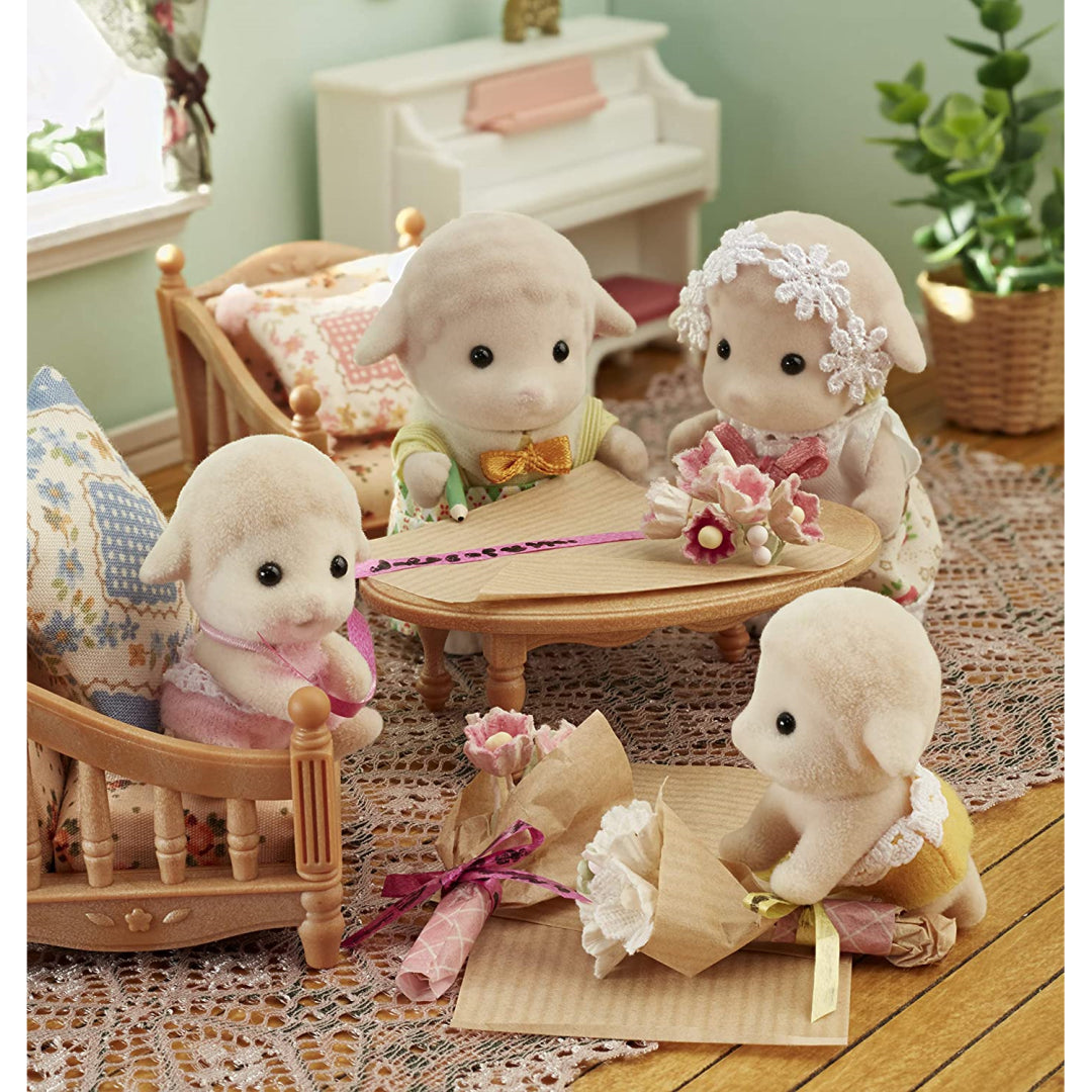 The Sheep twins are included in their own set called the Sheep Twins set. The results of the Sylvanian Family Election 2020 placed their clan in third position. Contains the Sheep twins Sean and Shona, who are seated and crawling respectively, as well as a pushcart. The Sheep twins, whether they are sitting or crawling, are welcome to take a trip in the pushcart.
