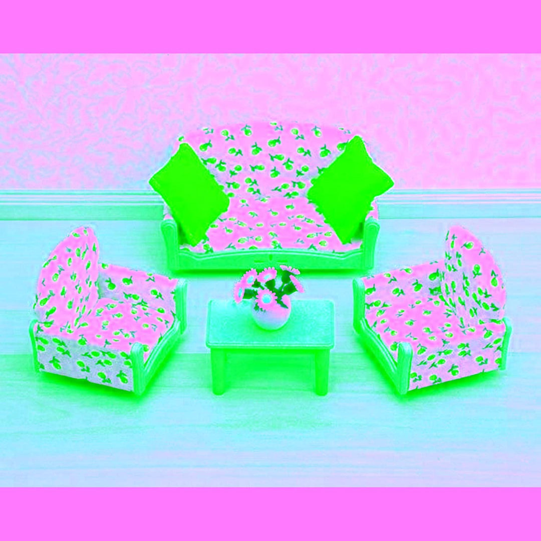 All the essentials you need to give your living area a beautiful and traditional rural look. There are two armchairs, a sofa, a coffee table, two throw pillows, a vase, and some flowers. Your Sylvanian family house should include these essential pieces of furniture. thing that would be suitable for use in the living room of any Sylvanian family You can round off your collection by purchasing it now.