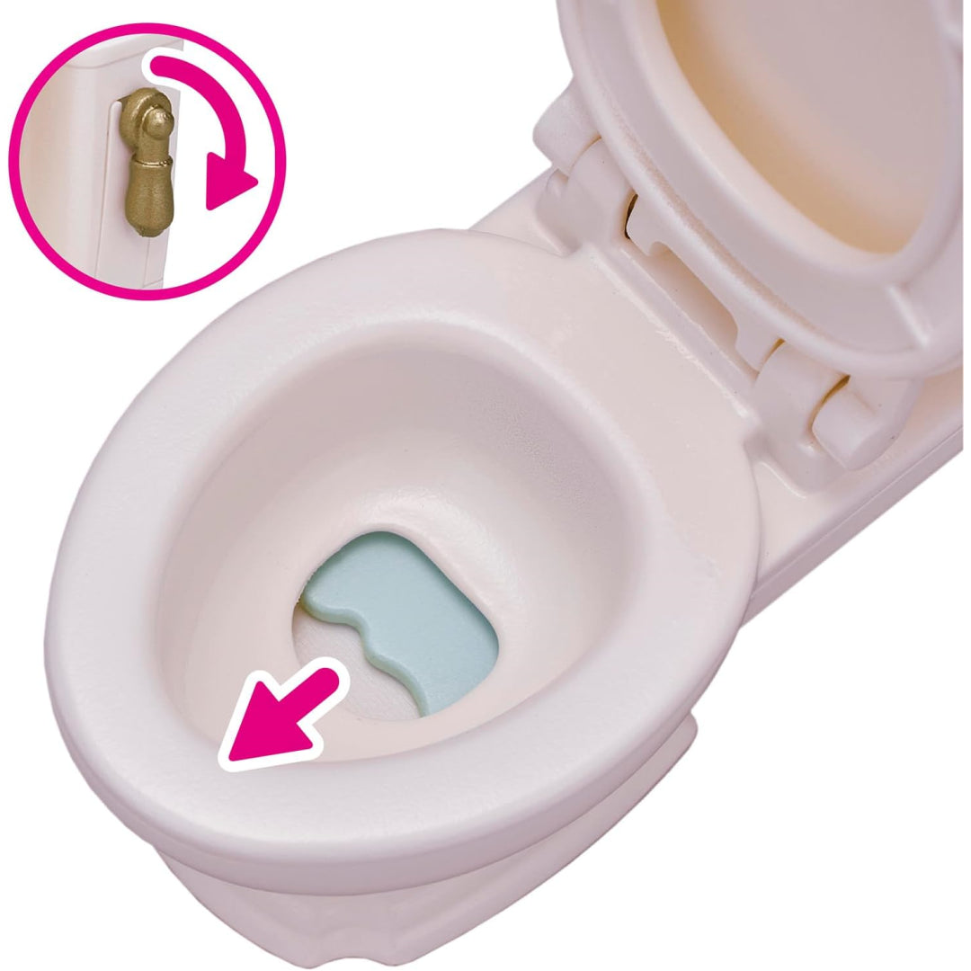 Let's add some bathroom fun to your Sylvanian Families collection without breaking the bank! This adorable toilet set brings all the realistic touches your little ones will love. The complete bathroom setup includes a working toilet with a moving flush lever, a washstand for good hygiene habits, and essential cleaning supplies to keep everything sparkly clean.