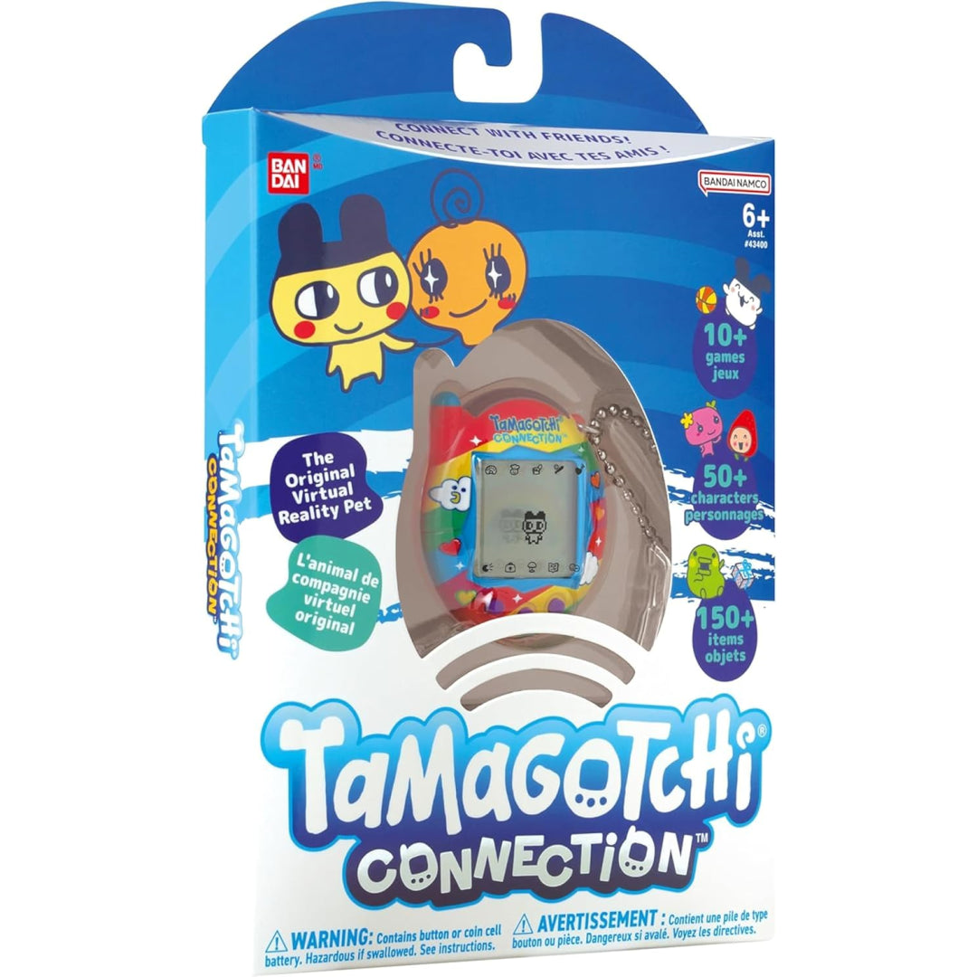 Rediscover the magic of Tamagotchi with this adorable Rainbow Sky digital pet! Perfect for busy families who want to share a bit of retro fun with their little ones, this updated version of the classic virtual pet features a larger screen for easier play. Your kids can nurture their own digital friend through feeding, cleaning and playtime, watching it evolve into one of 50 unique characters based on their care choices.