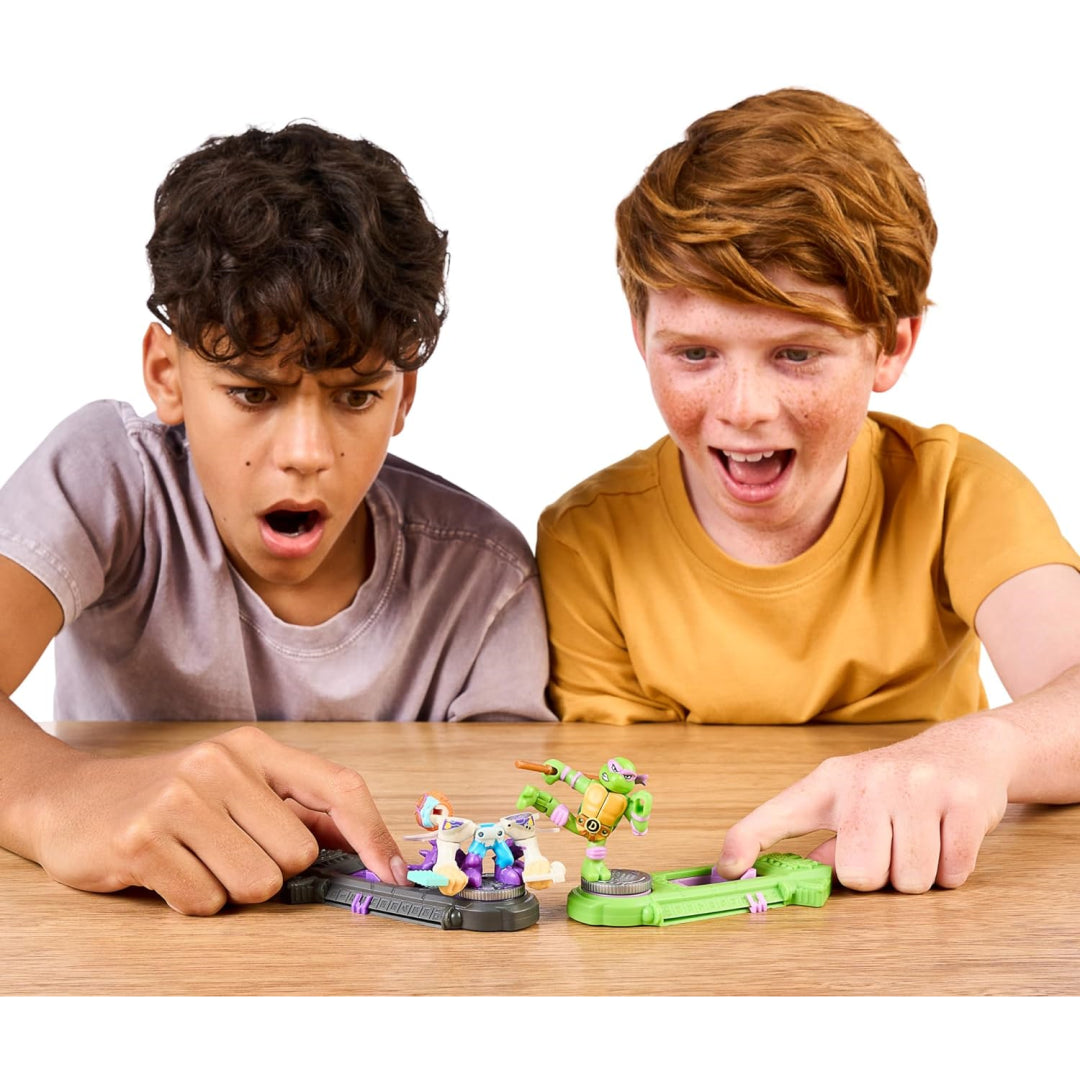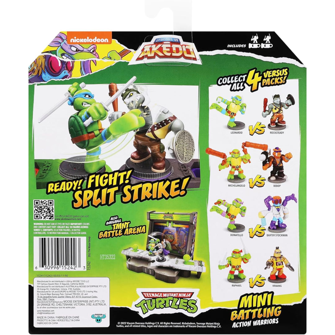Get ready for the ultimate fighting encounter between Akedo and the Teenage Mutant Ninja Turtles! What you should know about these very action-packed Versus Packs is as follows: TMNT Joins Akedo: To improve the fighting experience, Akedo has partnered up with the Teenage Mutant Ninja Turtles! You may now take part in exhilarating fights between your favourite TMNT heroes and villains. Heroes and Villains Are Found in Every Pack: A villain fighting figure and a Teenage Mutant Ninja Turtle hero are included in every Versus Pack. Prepare to face the evil Baxter Stockman, with TMNT protagonist Donatello leading the way! Distinctive Weapons and Fighting Styles: Every miniature warrior is outfitted with a distinct weapon and fighting technique. Donatello displays his bow staff and high kick fighting technique, while Baxter Stockman unleashes his Fly Swatter during combat. Ultimate Split Strike: With the special TMNT hero combat controller, master the skill of the Ultimate Split Strike. Develop your abilities and use strong techniques to slay your opponent in elegant fashion! Gather Them All: The conflicts are unending since there are three more Versus Packs available! Watch out for Raphael vs. Krang, Michelangelo vs. Bebop, and Leonardo vs. Rocksteady.