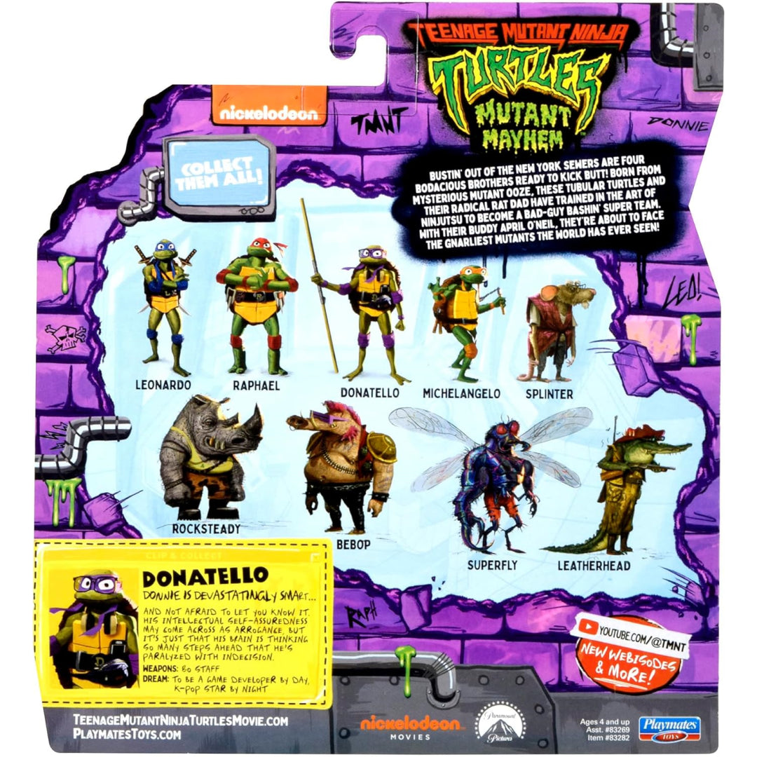 Meet Donatello, the tech-savvy genius of the Teenage Mutant Ninja Turtles, in this brilliantly priced 4.5-inch action figure from the new CG-animated film Mutant Mayhem. This clever turtle comes complete with his signature bo staff, perfect for both display and play. Your little ones will love recreating Donnie's journey from underground coder to aspiring game developer and K-Pop star!
