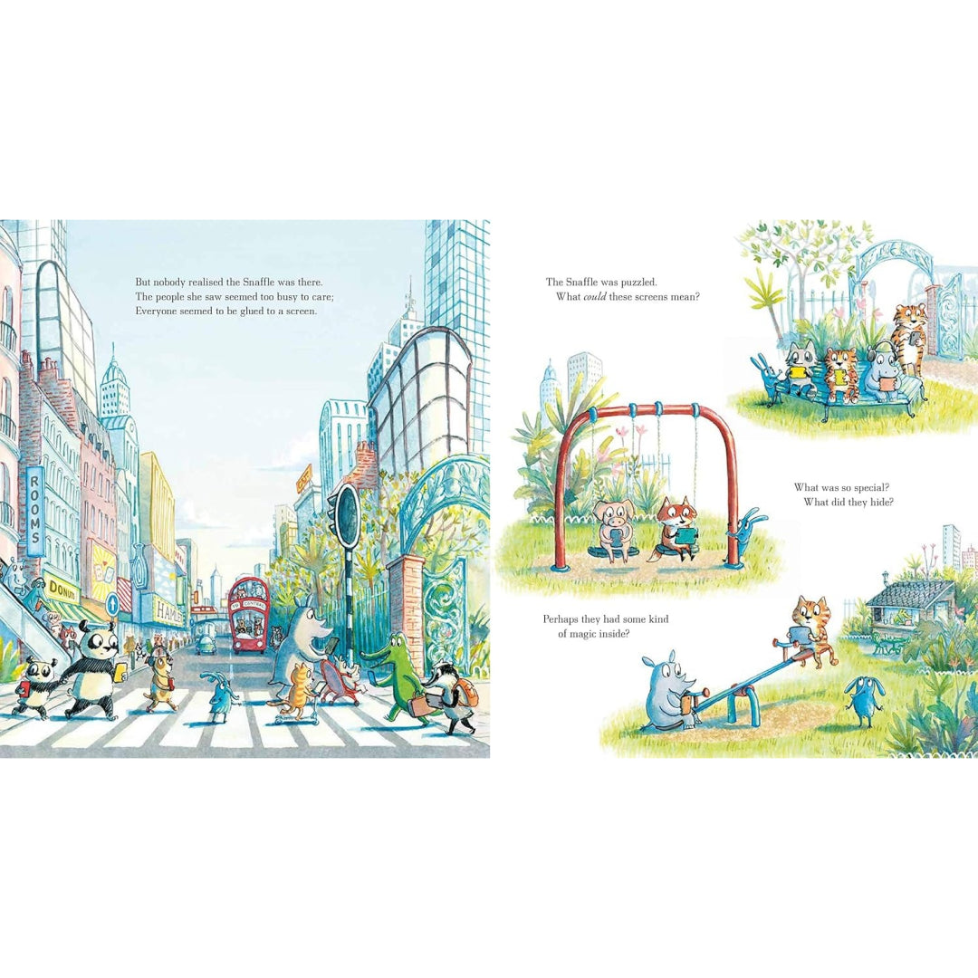 This enchanting story book is perfect for busy families looking to bring more fun and less screen time into their daily routine! When a mischievous creature called the Snaffle arrives in the city, she discovers everyone's too preoccupied with their devices to play. Her solution? Chomping down every screen in sight! What follows is a delightfully chaotic adventure that will have your little ones giggling along.