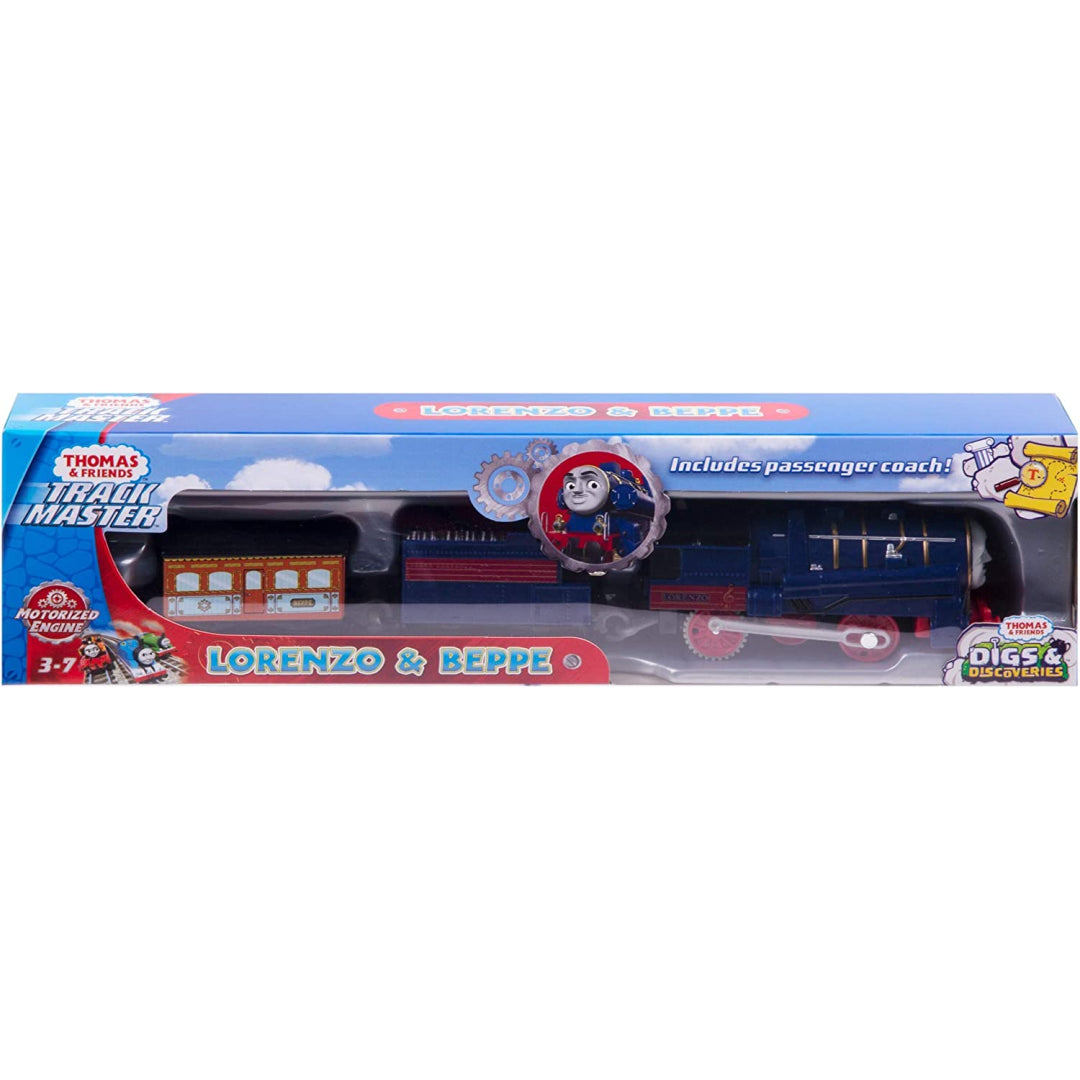 The Thomas & Friends TrackMaster series allows children to enjoy the world of Thomas in a way that has never been possible before. The collection includes enthralling playsets and motorised engines based on children's most beloved characters. You may now collect Lorenzo & Beppe, who arrives with a passenger coach, and as he is one of Thomas' closest friends, you should obtain him as soon as possible. Lorenzo & Beppe come with a passenger coach.