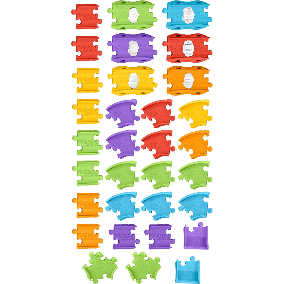 Thomas and Friends Railway Pals Interactive Vehicles and Train Sets Deliver Fun-Filled Play That Encourages Development in Toddlers Through Motor Skills, Thinking Skills, Academics, and Imagination The Thomas and Friends Railway Pals interactive vehicles and train sets deliver fun-filled play that encourages development in toddlers This track pack allows children to connect their existing sets to expand their world or build distinct layouts. It contains 32 track pieces and six activation points. When toddlers roll the interactive railway pals vehicles (which are sold separately and are subject to availability) over the track activation points, they will hear the characters deliver sounds, songs, and phrases that teach letters, numbers, and colours. This will provide them with an engaging and educational playtime experience.