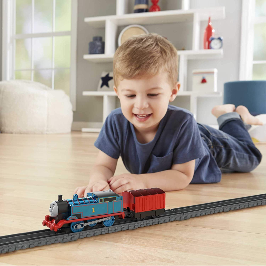 Preschoolers can celebrate their favourite No. 1 blue engine with this shiny Thomas & Friends motorized toy train from Fisher-Price! Flip the switch on top of the engine to send Celebration Thomas and his cargo car racing along any TrackMaster track for exciting adventures! (Track sets sold separately.) You simply cant go wrong with this toy.