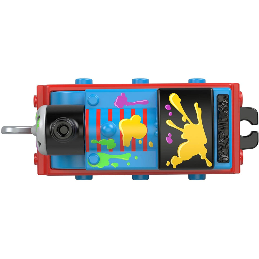 Thomas has returned with a splat and sticky things all over his face and clothes. We're not sure how he got himself into this situation, but he's eager to get back into the game. He is ready to be connected to other trains in the set, and his diecast body and plastic exterior guarantee that he will survive for a long period of time. Get yours right now.