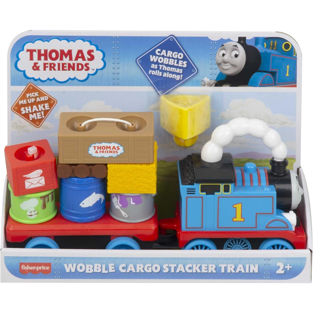The Thomas & Friends Wobble Cargo Stacker Train lets kids load and unload cargo for Thomas to deliver, just like on Sodor! But watch out…as toddlers stack 'em up and push the train along, things start to get real wobbly. Load 'em up and push Thomas along to see the cargo wobble back and forth! Cargo pieces are sized just right for small hands to grasp and stack. Peep-peep! Kids can imagine their own off-track Sodor adventures with their pal, Thomas.