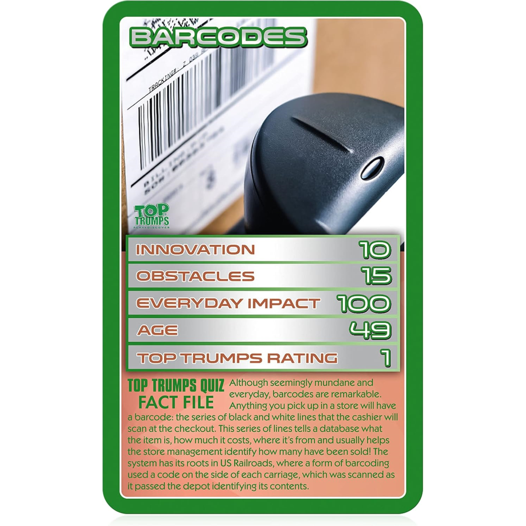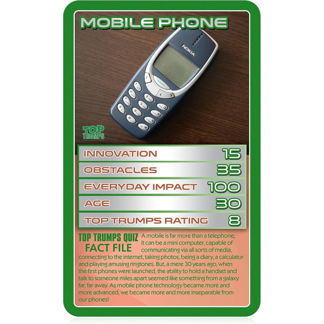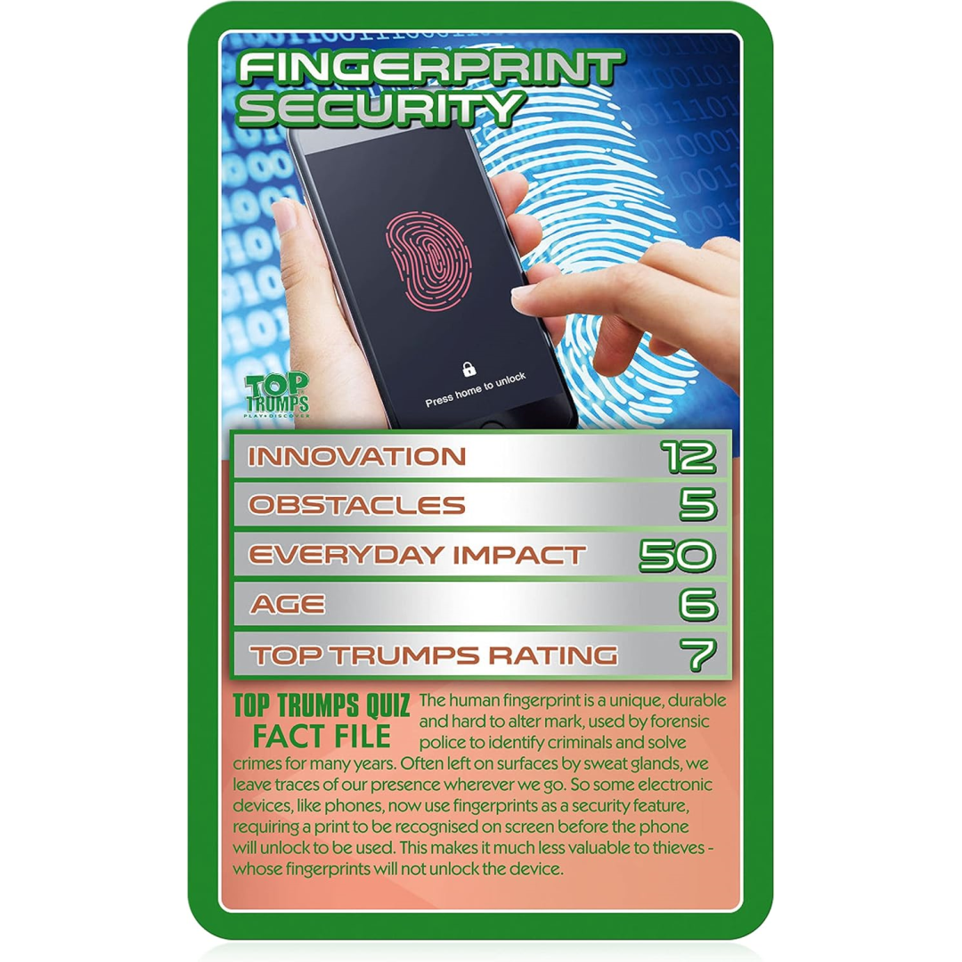 Tech-savvy families will love this pocket-sized Top Trumps game featuring modern marvels and groundbreaking gadgets! Perfect for quick games during homework breaks or family game nights, this portable pack combines learning with competitive fun. Compare fascinating facts about touchscreens, Wi-Fi, mobile phones and more while battling to become the ultimate tech champion.