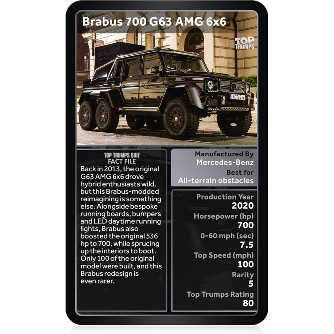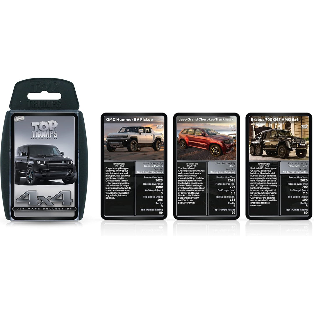 Rev up family game time with this epic Top Trumps 4x4 Edition! Perfect for busy families and travel, this pocket-sized powerhouse packs 30 incredible off-road vehicles into one brilliant value card game. From the mighty Hummer H1 to the luxurious Rolls-Royce Cullinan, your little car enthusiasts will love competing with fascinating stats while sneakily learning about the world's most amazing all-terrain vehicles.