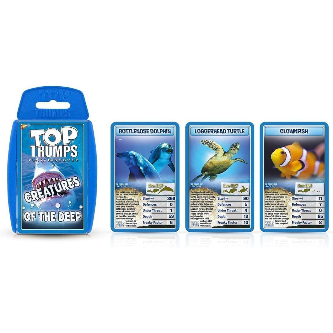 Splash into family fun with Top Trumps Creatures of the Deep! Perfect for busy parents looking to combine learning with entertainment, this underwater-themed card game brings ocean facts to life. Compare amazing sea creatures like the blue blubber jellyfish, common octopus, and common seal, while sneaking in some educational value during playtime.