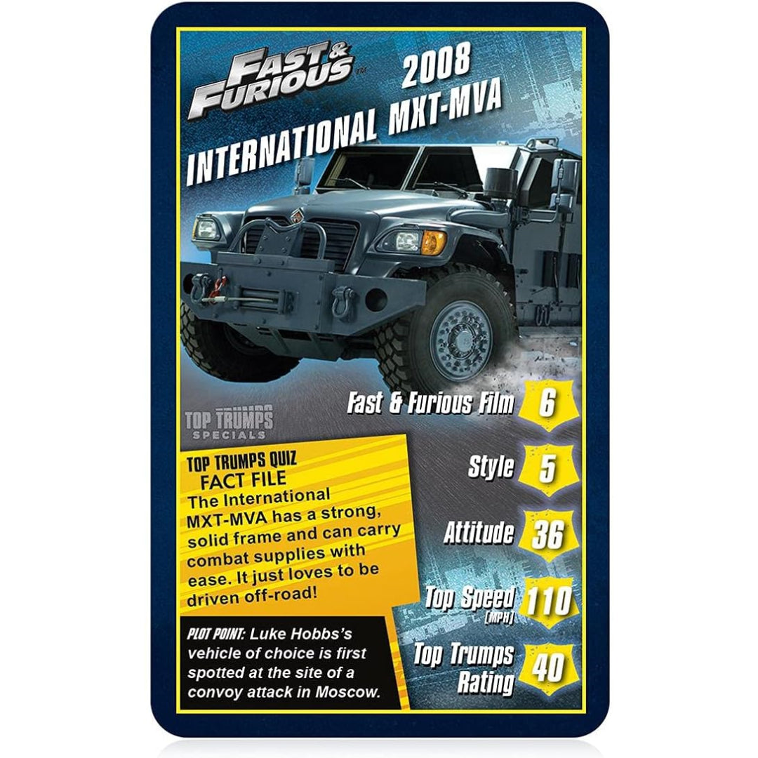 Race into family game night with this Top Trumps Fast & Furious edition! Perfect for busy parents looking to combine learning with movie-themed fun, this portable card game features the franchise's most iconic cars and characters. Compare exciting stats like speed, power, and attitude while discovering cool facts about the blockbuster series.