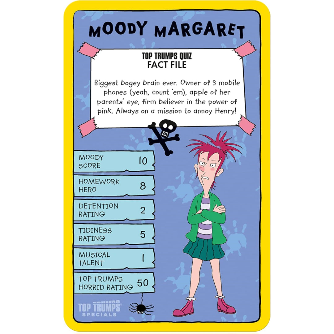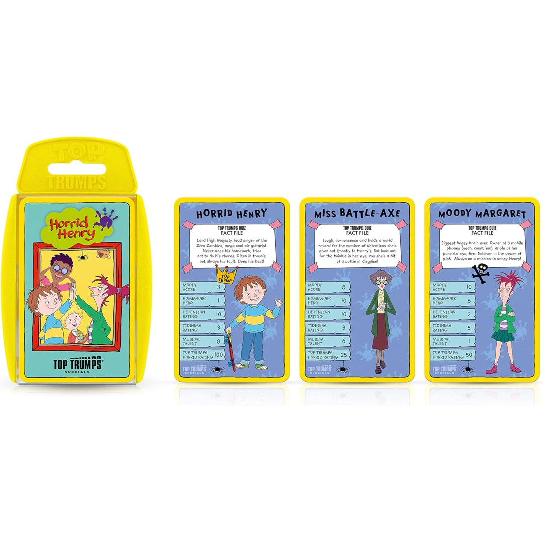 Bring home the delightfully naughty world of Horrid Henry with this fantastic Top Trumps card game! Perfect for busy families looking to pack maximum fun into their playtime, this compact game features 30 characters from the beloved series. Compare stats like tidiness, musical talent, and moodiness while enjoying quality time with the kids - ideal for rainy days, quick after-school games, or popping in your bag for entertainment on the go.