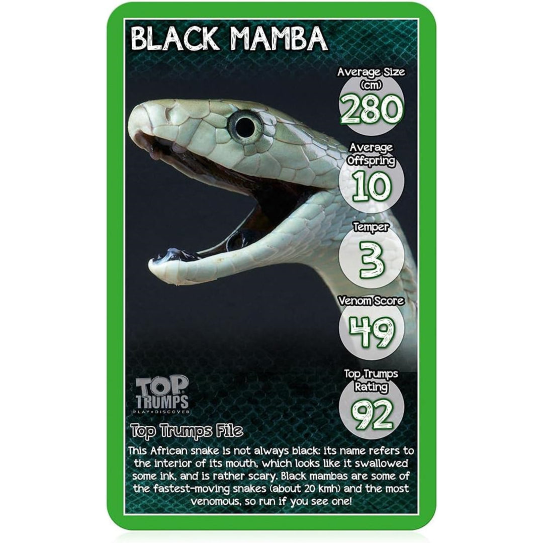 Get ready for a seriously slithery showdown with Top Trumps Snakes! Perfect for quick-play sessions between homework or keeping the kids entertained on rainy days, this educational card game brings the fascinating world of serpents right to your fingertips. From fierce King Cobras to stealthy Grass Snakes, each card packs a punch with real snake statistics and facts that'll have your little ones learning while they play.