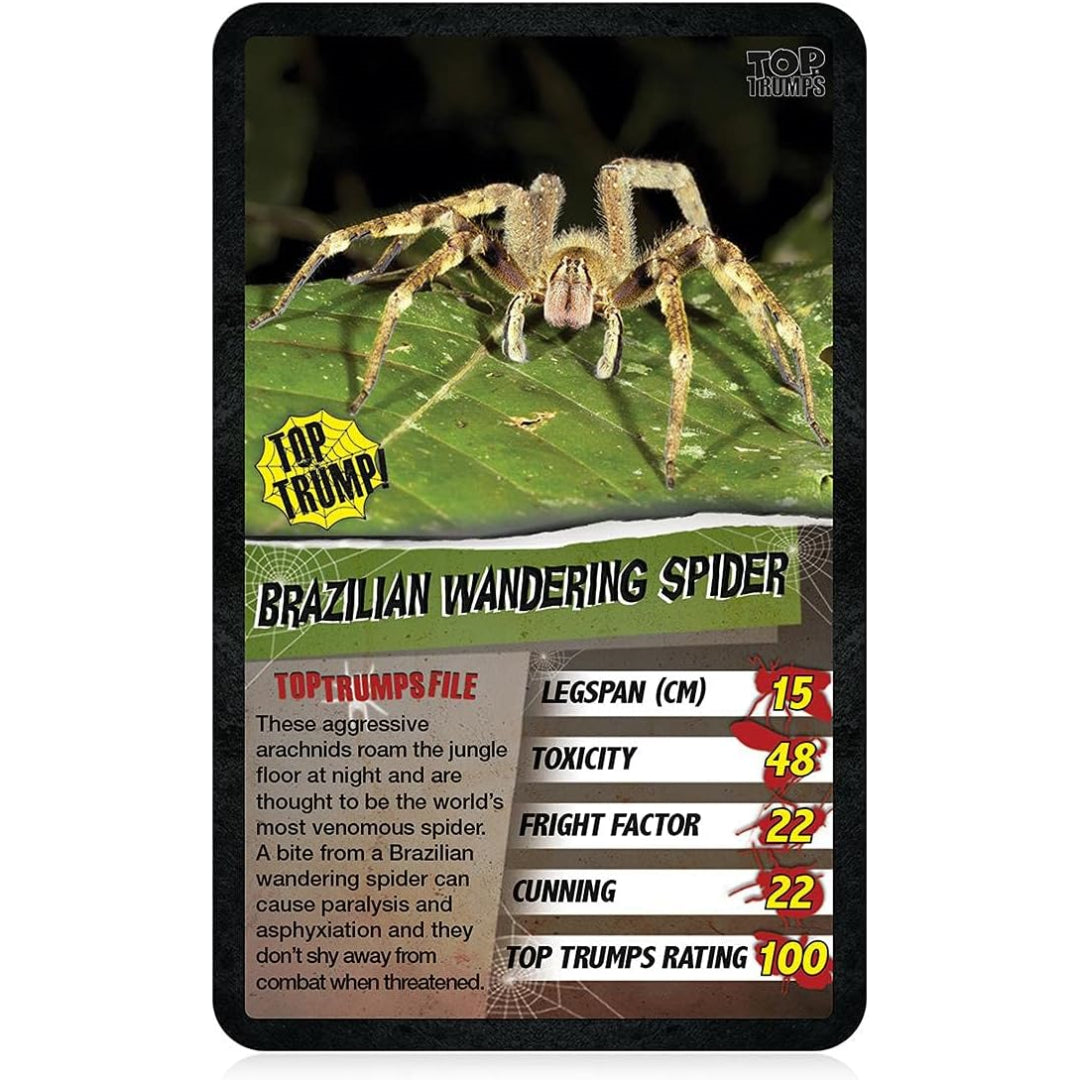 Discover Top Trumps in an exciting arachnid-themed card game perfect for curious kids and family game nights. With spooky spiders like Black Widows and Wolf Spiders to compare, this budget-friendly game brings educational fun right to your home. Each card features fascinating spider stats and fright factors that turn learning into a thrilling competition.