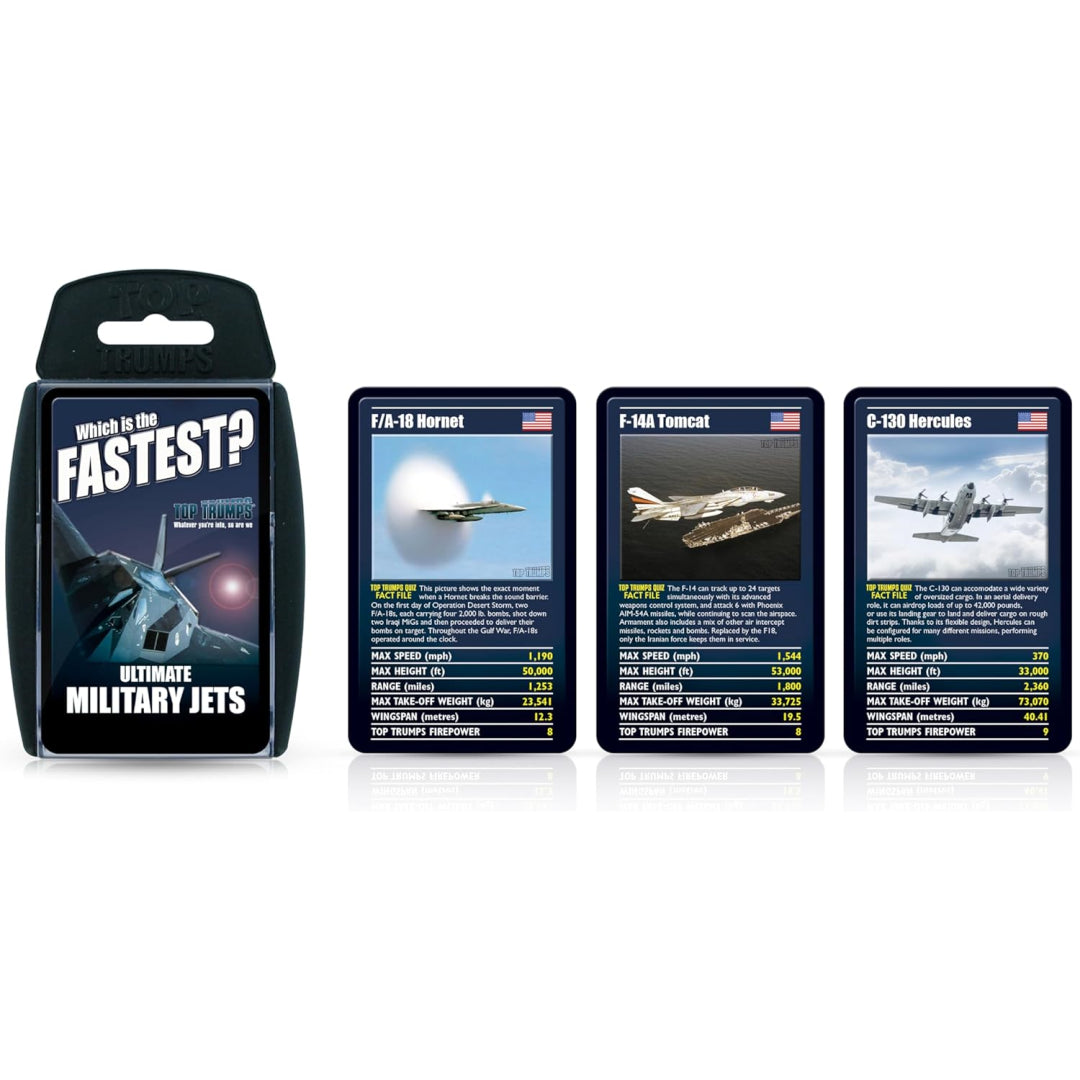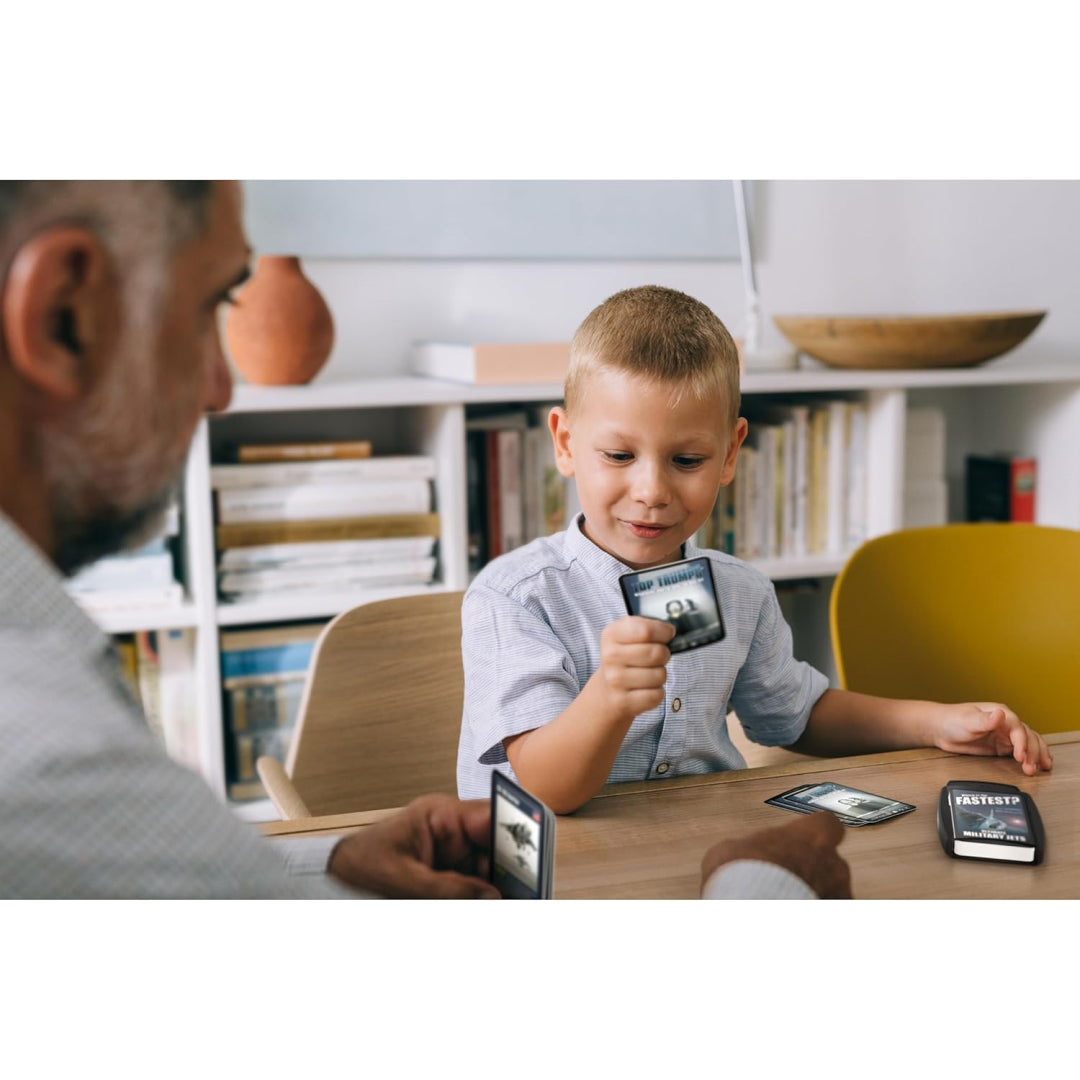 Get ready for sky-high fun and learning with Top Trumps Ultimate Military Jets! Perfect for busy families who love mixing entertainment with education, this classic card game brings the excitement of military aviation to your kitchen table. Each card features incredible aircraft like the Dassault Rafale, Hawk, and E-3 Sentry (AWACS), packed with real stats about speed, range, and wingspan that kids (and grown-ups!) will love comparing.