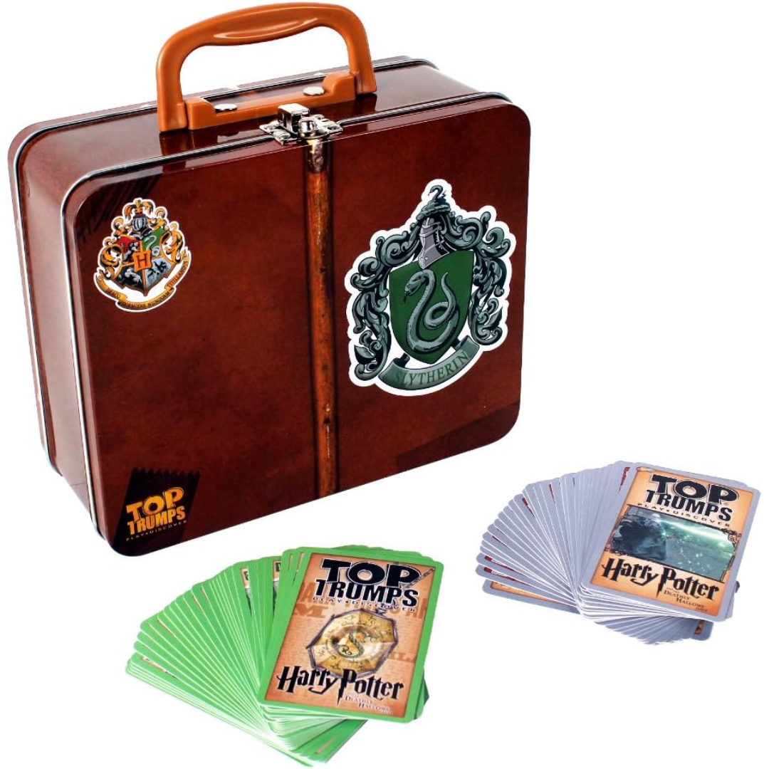 Fellow Harry Potter fans, get ready for magical family game nights with this Top Trumps Slytherin Collectors Card Game! Housed in a stunning Slytherin-themed tin that's perfect for popping in your bag, this set includes two complete card packs for double the wizarding fun. Perfect for keeping little ones entertained on rainy days or during those long car journeys!