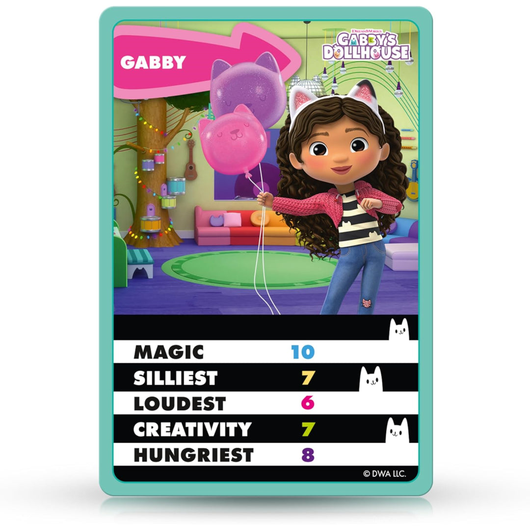 Join the magical fun with Top Trumps Juniors Gabby's Dollhouse card game - the perfect pocket-sized entertainment that won't break the bank! Perfect for busy parents who want educational play that travels anywhere, this charming card game brings favourite characters like Gabby, Kitty Fairy and Pandy Paws to life through exciting stat battles and fact-filled fun.