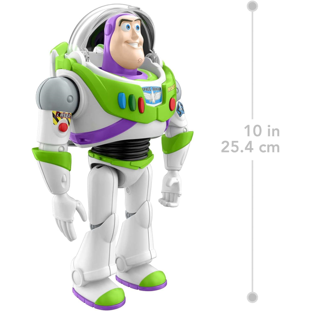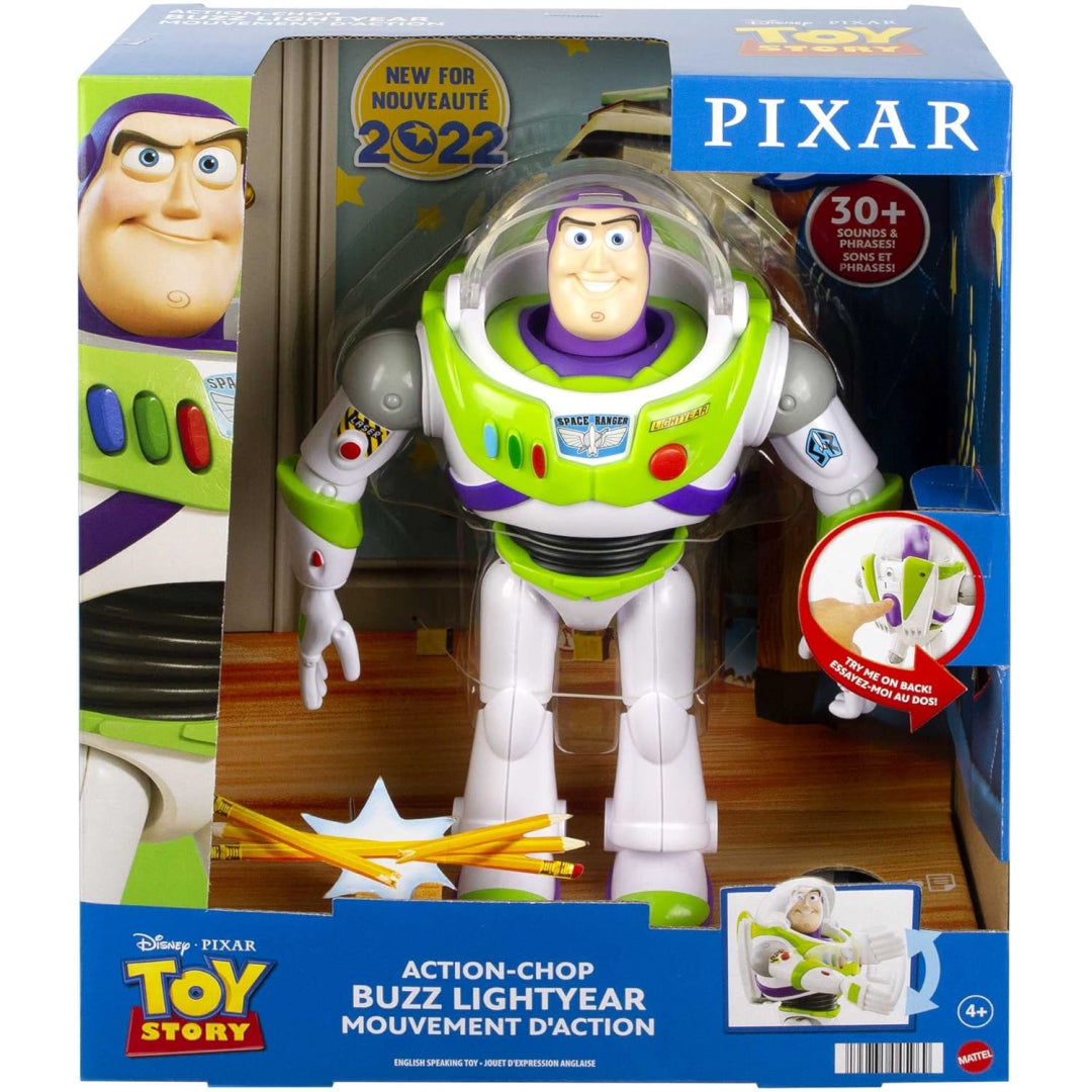 Fans of the Space Ranger from Disney and Pixar's Toy Story will experience great thrills and laughs thanks to the enormous, talkative, action-chopping Buzz Lightyear. By pressing the red button on his chest, the 12 in scale action figure of the spaceman may be made to say 30+ movie quotes, like "To infinity, and beyond." You may also activate a dynamic chopping motion with noises by pressing the button on his back, but that's not all. In addition to the unusual features, fans will find interactive pleasure on a huge scale thanks to the many moveable joints. The famous Space Ranger costume and helmet on the Buzz Lightyear figurine give it a very movie-accurate appearance. With the words and actions coming straight from Buzz himself, children can experience all their favourite moments from the Toy Story flicks.