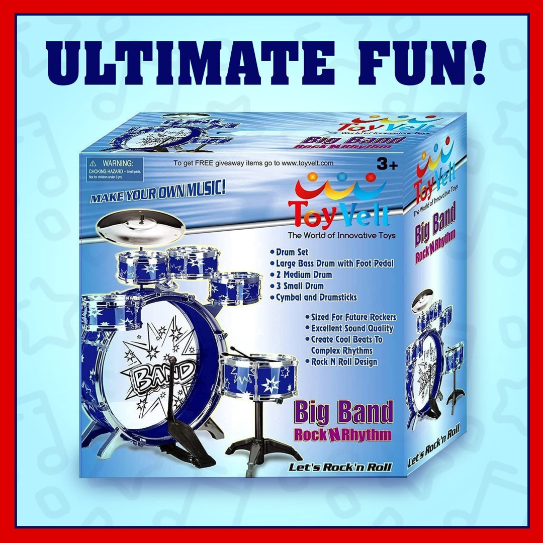 Let your little one's musical journey begin with this brilliant 12-piece drum kit from Toyvelt! Perfect for busy families looking to nurture creativity without breaking the bank, this complete set has everything your budding drummer needs to explore rhythm and sound. The kit arrives ready for immediate play - ideal for those surprise moments when inspiration strikes!