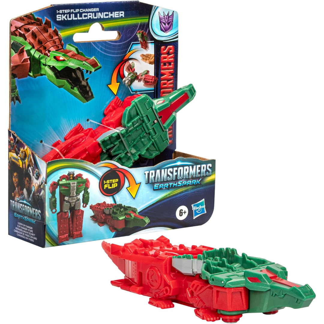 Meet the Transformers Earthspark Skullcruncher 1-Step Flip Changer, the perfect addition to your toy box that delivers proper two-for-one value. This clever 10 cm robot figure transforms from robot mode to fearsome Crocobot mode with a single flip in the air, then switches back manually with an easy 1-step conversion. It's the kind of toy that keeps little hands busy and costs less than buying separate figures.