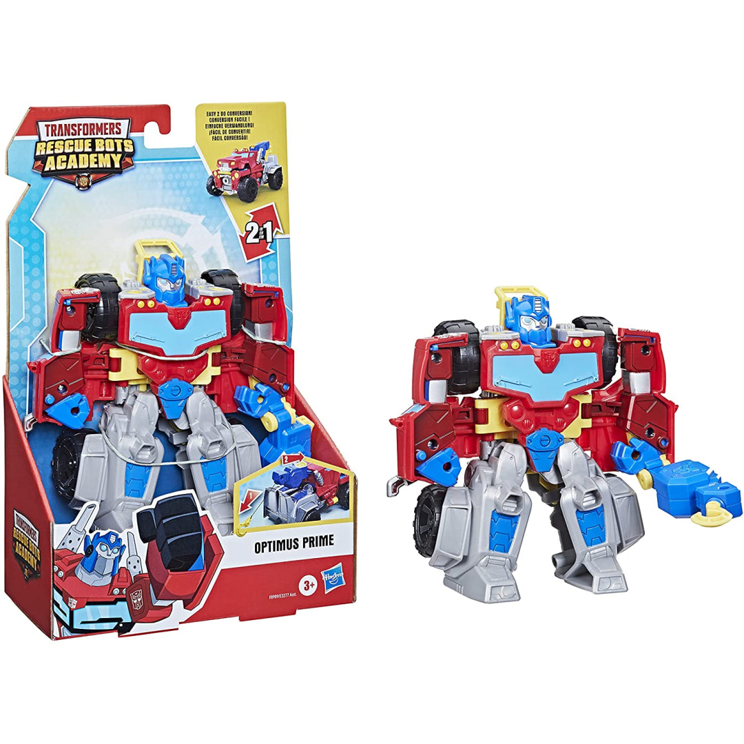 Optimus Prime recruits young Autobots to the Rescue Bots Academy for training. Little heroes aged 3 and up join one of their favourite characters from the Transformers Rescue Bots Academy on a thrilling rescue operation. The easy-to-transform Optimus Prime action figure is specially intended for little hands, and it transforms from robot to vehicle mode and back in one simple move. The Optimus Prime figure has a wonderful tow hook that can be triggered at the press of a button while in tow truck mode. Boys and girls are invited to race to the rescue with this 6-inch Transformers collectible action figure! You may also construct a rescue squad by collecting additional Transformers Rescue Bots Academy action figures. (Other figurines are available for purchase individually.) Depending on what's available.)
