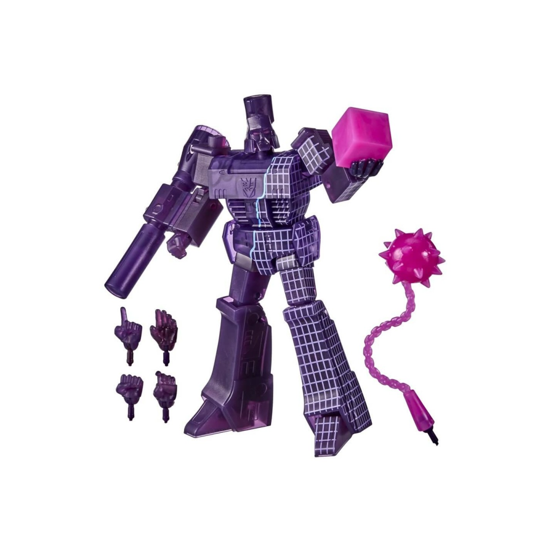 Crafted for maximum screen accuracy, this Megatron comes equipped with his signature Fusion Cannon, an Energon cube, and mace accessories. The figure includes four interchangeable hands for dynamic posing possibilities, making it ideal for both play and display. At a brilliant price point, it's a fantastic addition to any Transformers collection or a perfect starting piece for young fans.