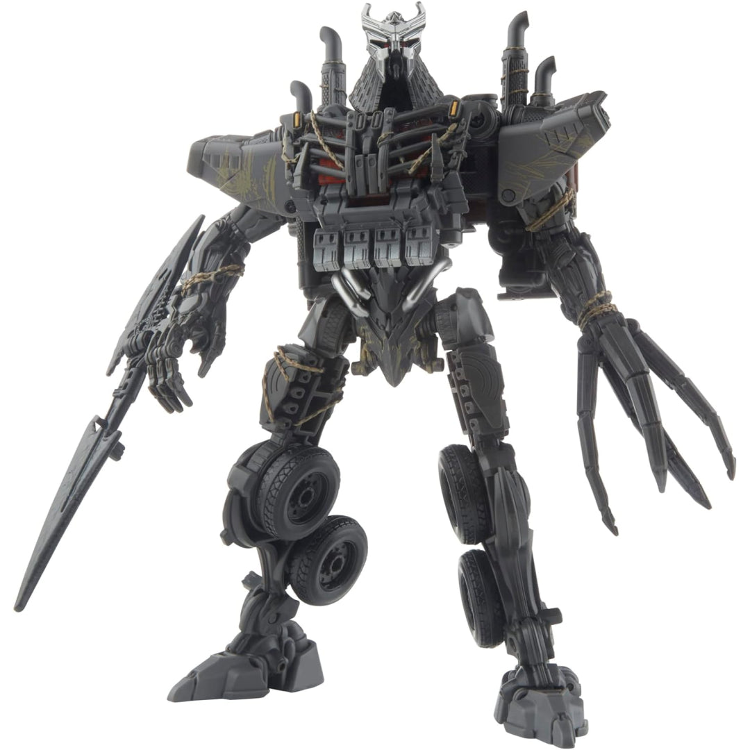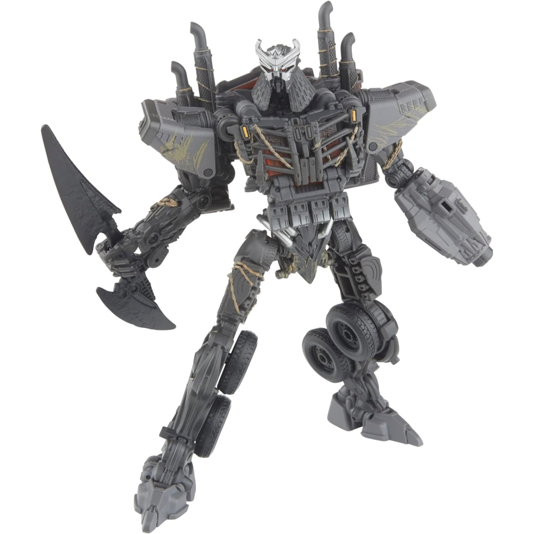 With the Transformers Studio Series Leader Class Scourge action figure, you can add the spectacular action from the big screen Transformers movies to your collection! In a fight for the Transwarp Key, the Autobots are up against Scourge and the Terrorcons. For 8-year-old boys and girls, Transformers Studio Series toys are collectible action figures with accessories and features inspired by movies. Pose the Scourge toy in the accompanying Attack at the Museum detachable background set after converting the action figure in 31 stages from robot to truck mode. Transformers action toys are excellent presents for both girls and boys!