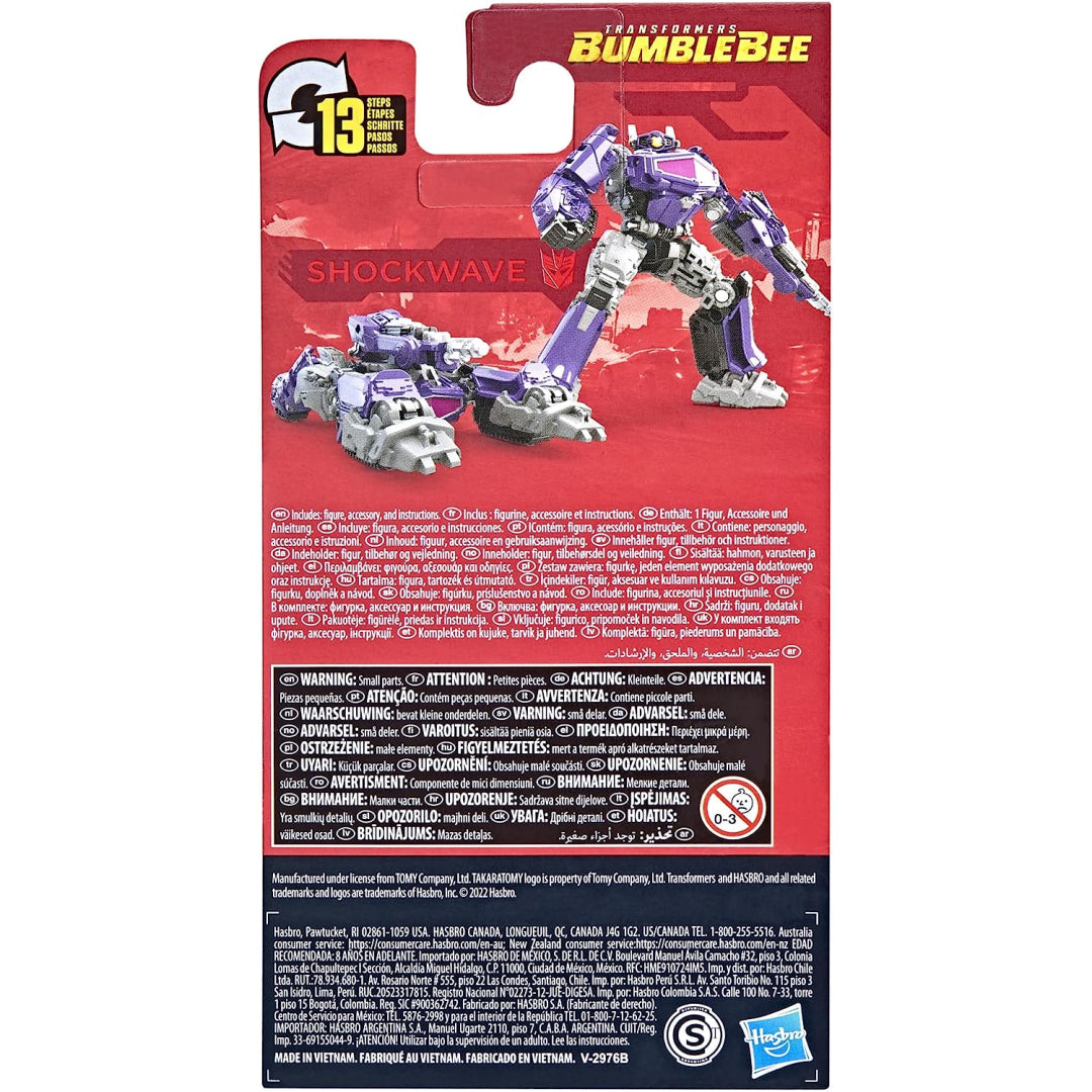 Studio Series has always given fans the opportunity to extend their love of Transformers beyond the confines of the big screen and create the ultimate Transformers collection based on memorable moments from the Transformers movie world. Now, the Studio set line is expanding to include the dramatic scenes and characters from the legendary film The Transformers: The Movie, which was released in 1986. This will provide collectors with a whole new set of figures inspired by the screen to collect. This Studio Series Core Class Transformers: Bumblebee-inspired Shockwave figure measures at 3.5 inches and changes from robot to Cybertronian hovercraft mode in 13 stages. Each figure is offered individually and is subject to availability. Included in the package is an attachment in the form of a blaster that can be attached to the figure while it is in vehicle mode.