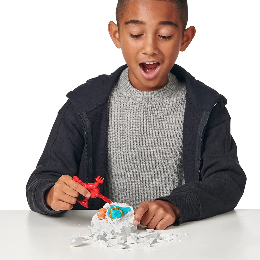 The sequel to Treasure X Dino Gold has even more fantastic Mini Dinos to unearth and new Treasures to discover! There is a new stone block complex to dig out and break apart via 10 levels of adventure in the beloved Treasure X unpacking dig experience! Will you discover treasure covered in REAL GOLD?
