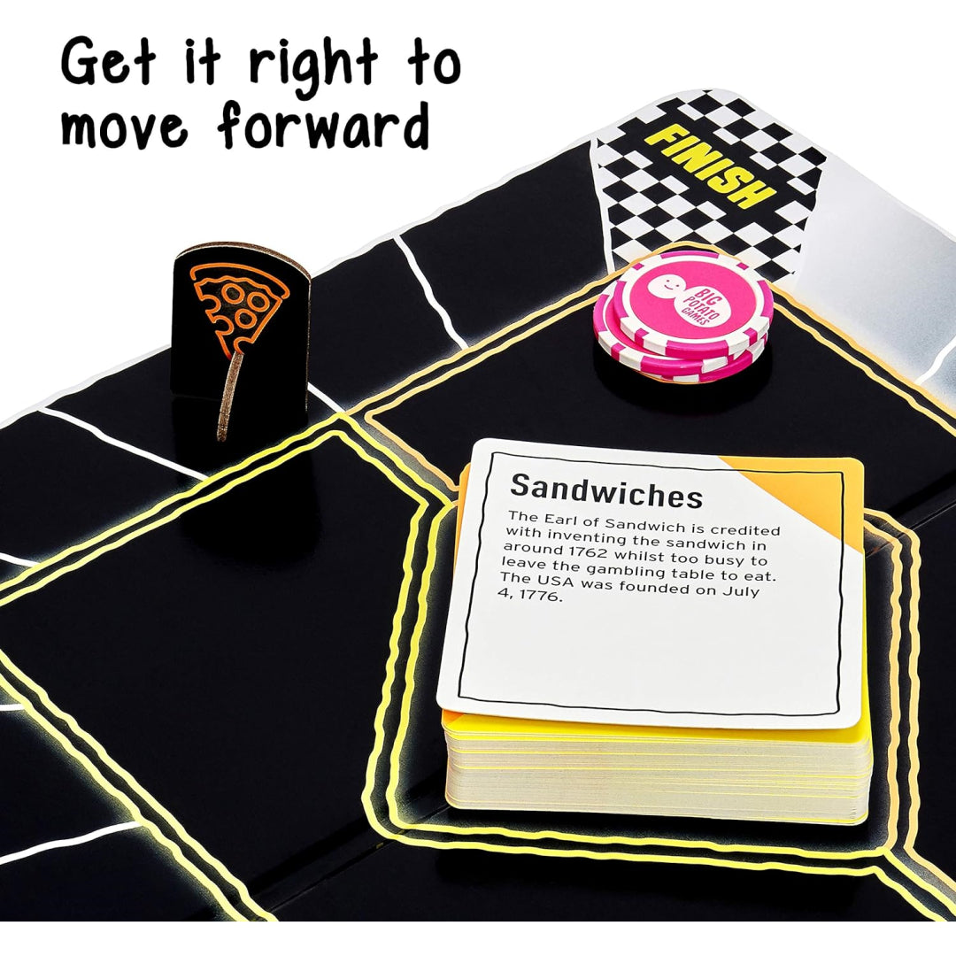 Place your bets and test your knowledge about which came first - did choppers really come before Arnold Schwarzenegger? Was ketchup around before mayonnaise? Land on special Time Tokens and guess the exact year to earn bonus moves. With questions suitable for ages 10 and up, it's a fantastic way to combine learning with family fun.