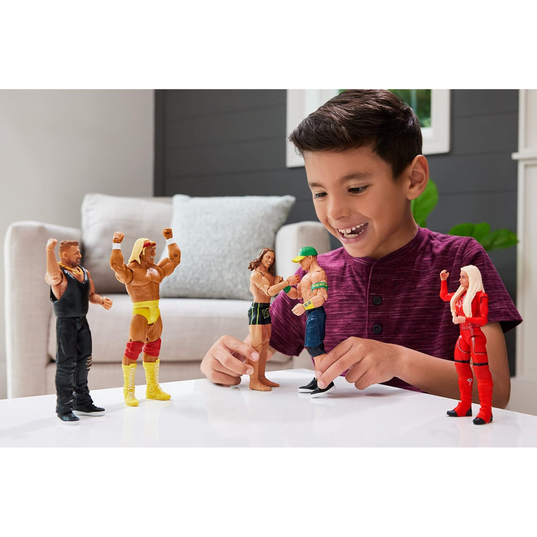 Playsets, cars, WWE titles, and action figures allow you to reenact every moment of the match, both inside and outside the ring. The WWE Universe may relive dream bouts and unforgettable moments from RAW, SmackDown, WrestleMania, and other legendary WWE events, or they can collect their favourite WWE Superstars and Legends in accurate detail. Then, now, forever, in unison.