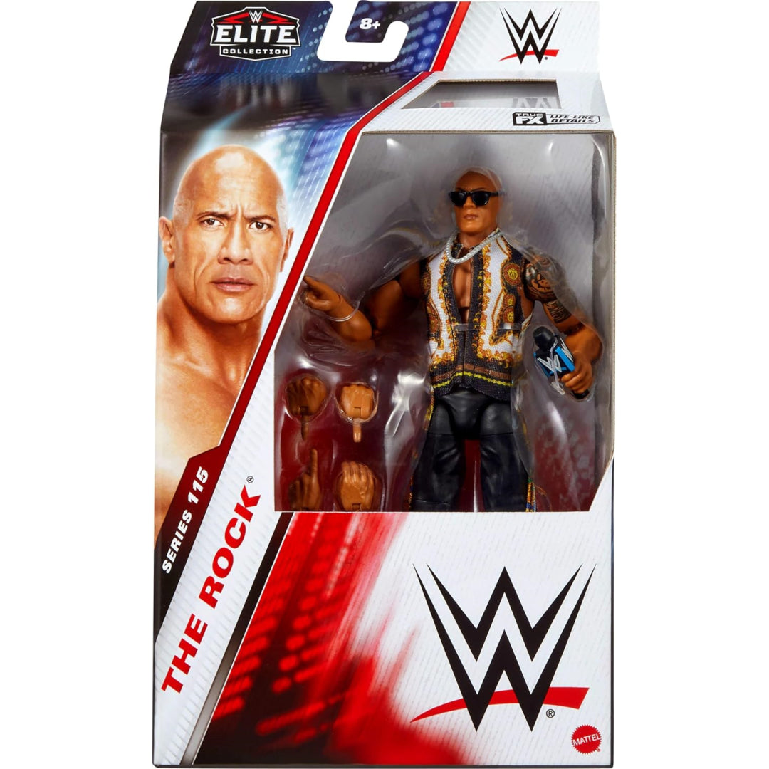 Experience the ultimate WWE collectible with this highly detailed 6-inch Elite 115 The Rock action figure, featuring authentic TrueFX facial technology, 25 articulation points, interchangeable hands, and iconic accessories that let fans recreate The Great One's legendary moves from the Rock Bottom to his famous eyebrow raise, making it a must-have piece for WWE collectors and fans of The People's Champion.