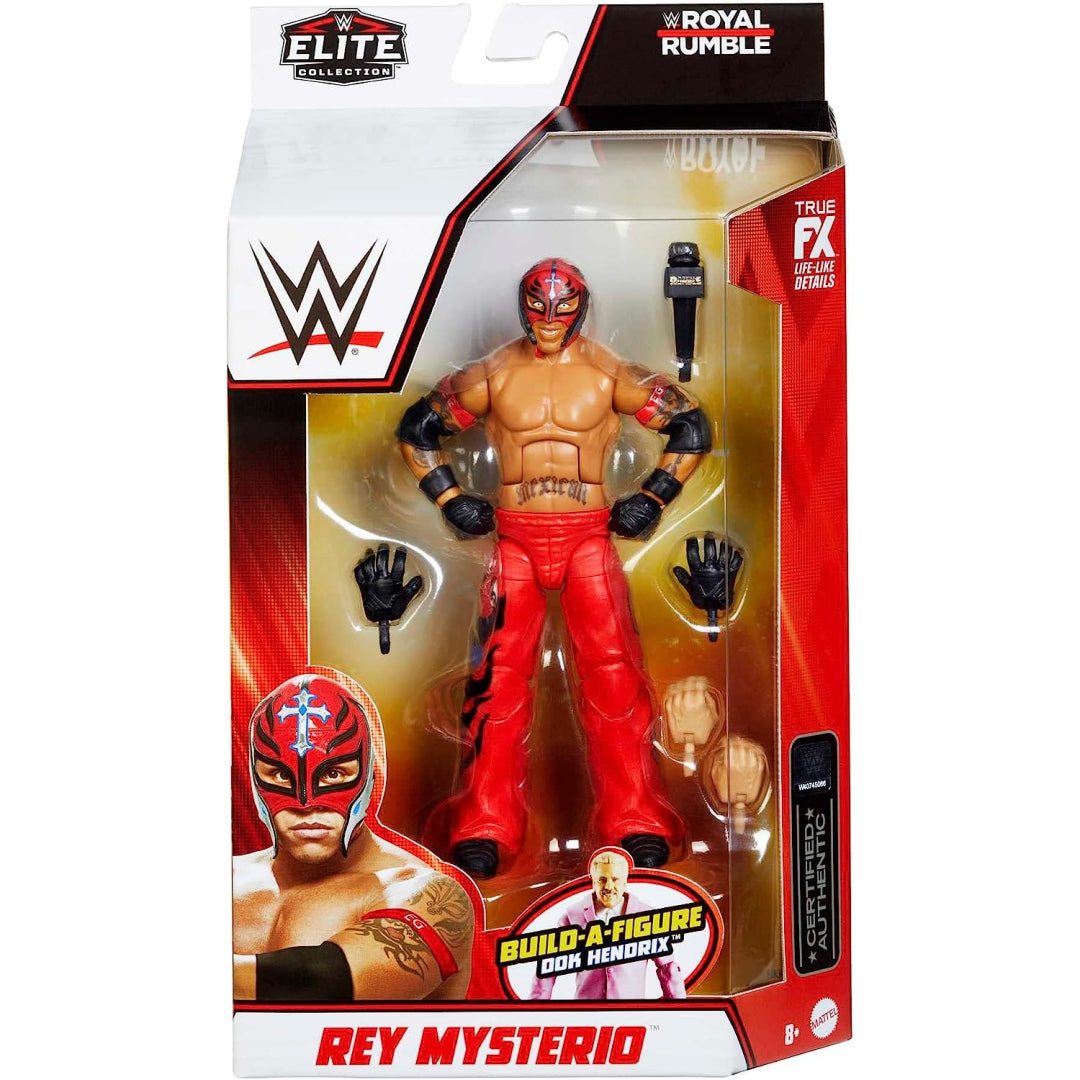 Any WWE fan's collection will benefit greatly from the inclusion of the WWE Elite Action Figure Royal Rumble Rey Mysterio with Accessory and Dok Hendrix Build-A-Figure Parts. This figure also comes with a variety of build-a-figure parts. This action figure depicts the high-flying Rey Mysterio, complete with his classic Royal Rumble costume and a one-of-a-kind accessory. Additionally, the figure comes with a stand.