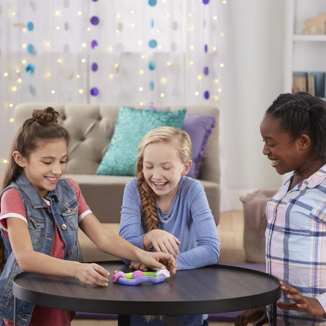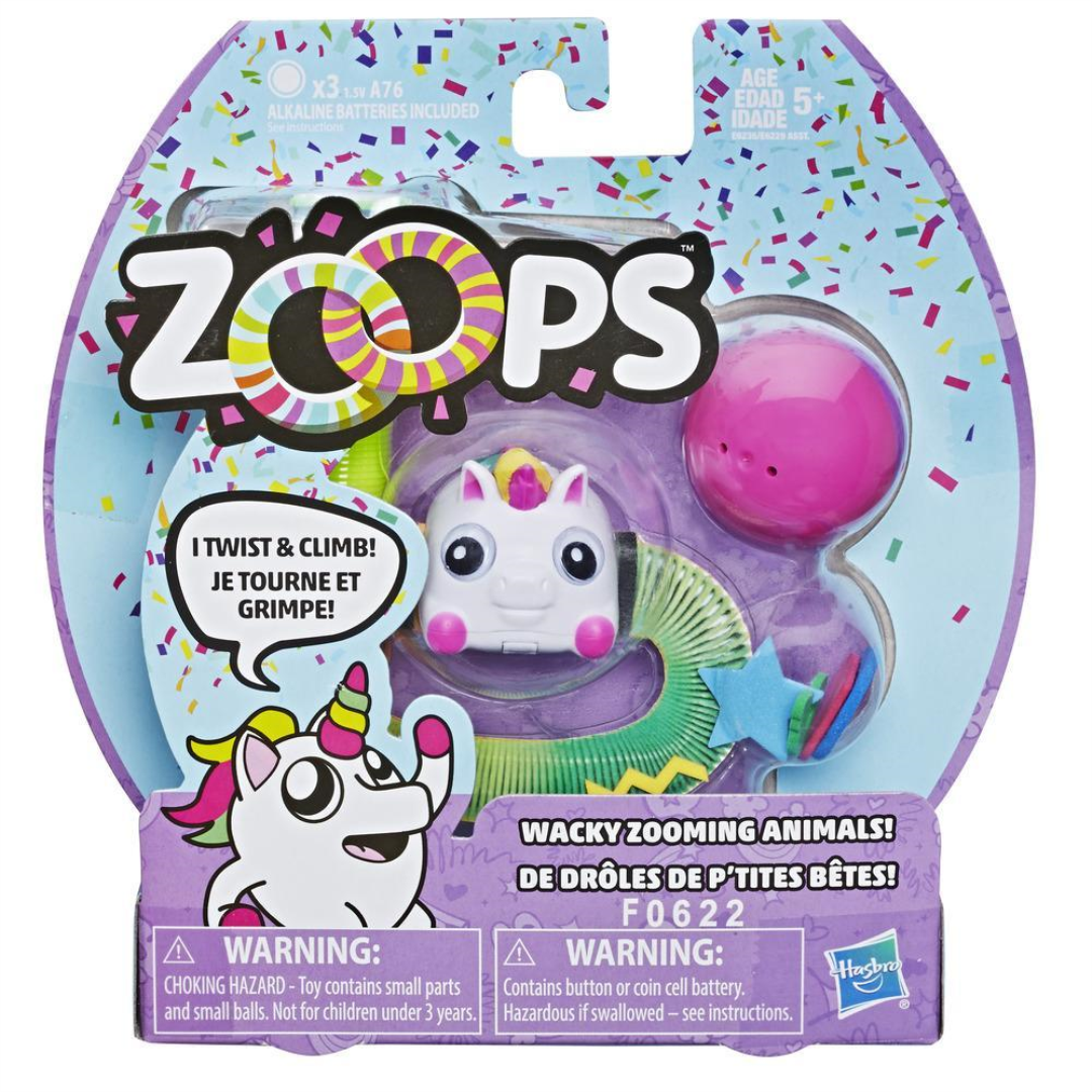 They twist! They zoom! They climb! These adorable and hilarious electronic party pets bring the party wherever they go. Explore all the tricks the Zoops toys can do! Rainbow Unicorn is part of the wacky party crew that zooms, flips, climbs up your arm, collects foam treats (included), and does tricks with the ball.